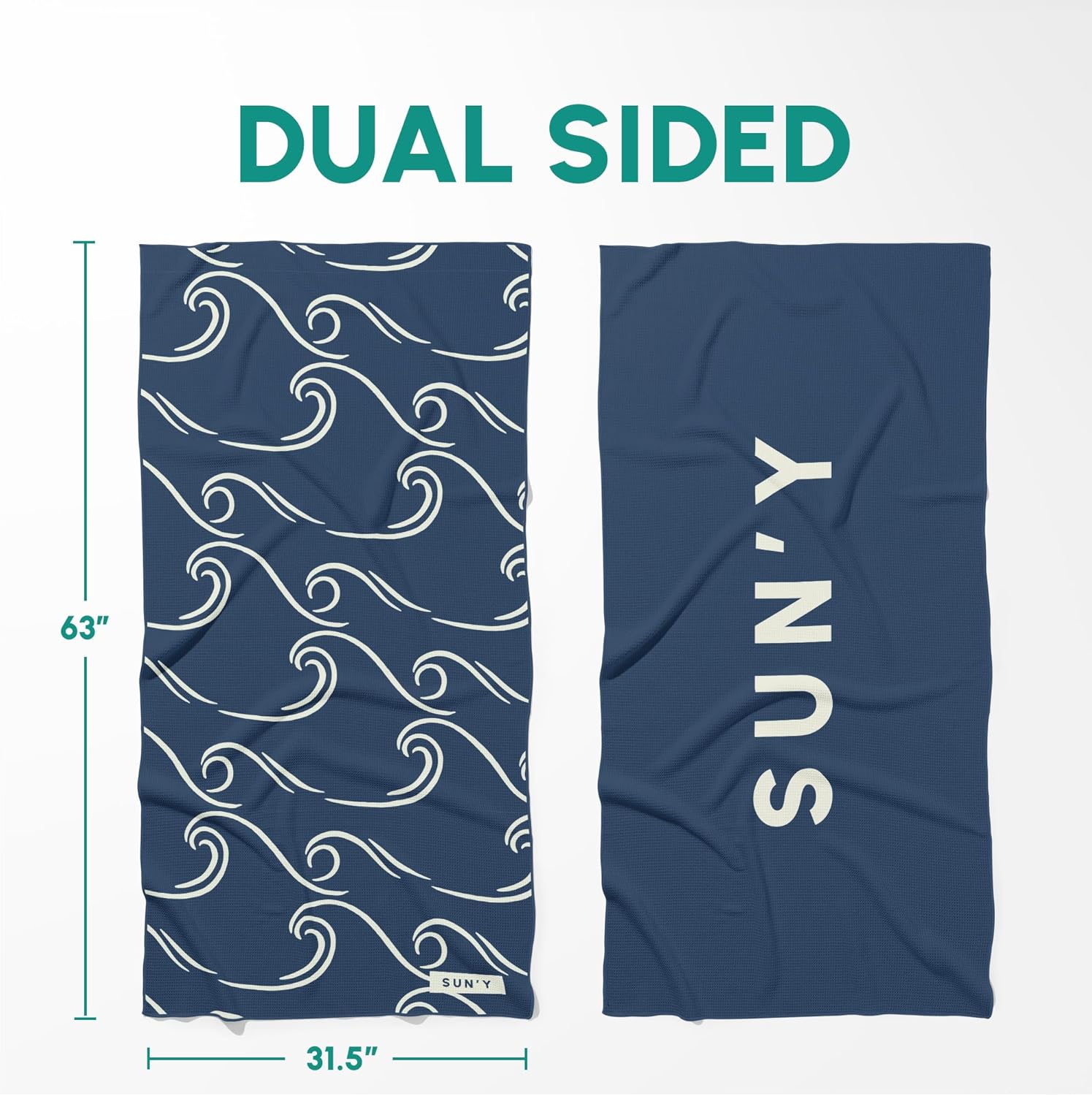 - SAND FREE BEACH TOWEL: Our SUN'Y large microfiber beach towels keep the sand where it belongs—under your feet, not in your bag. Featuring innovative microfiber waffle towel technology, these sandless beach towels effortlessly repel sand, ensuring a hassle-free beach experience.
