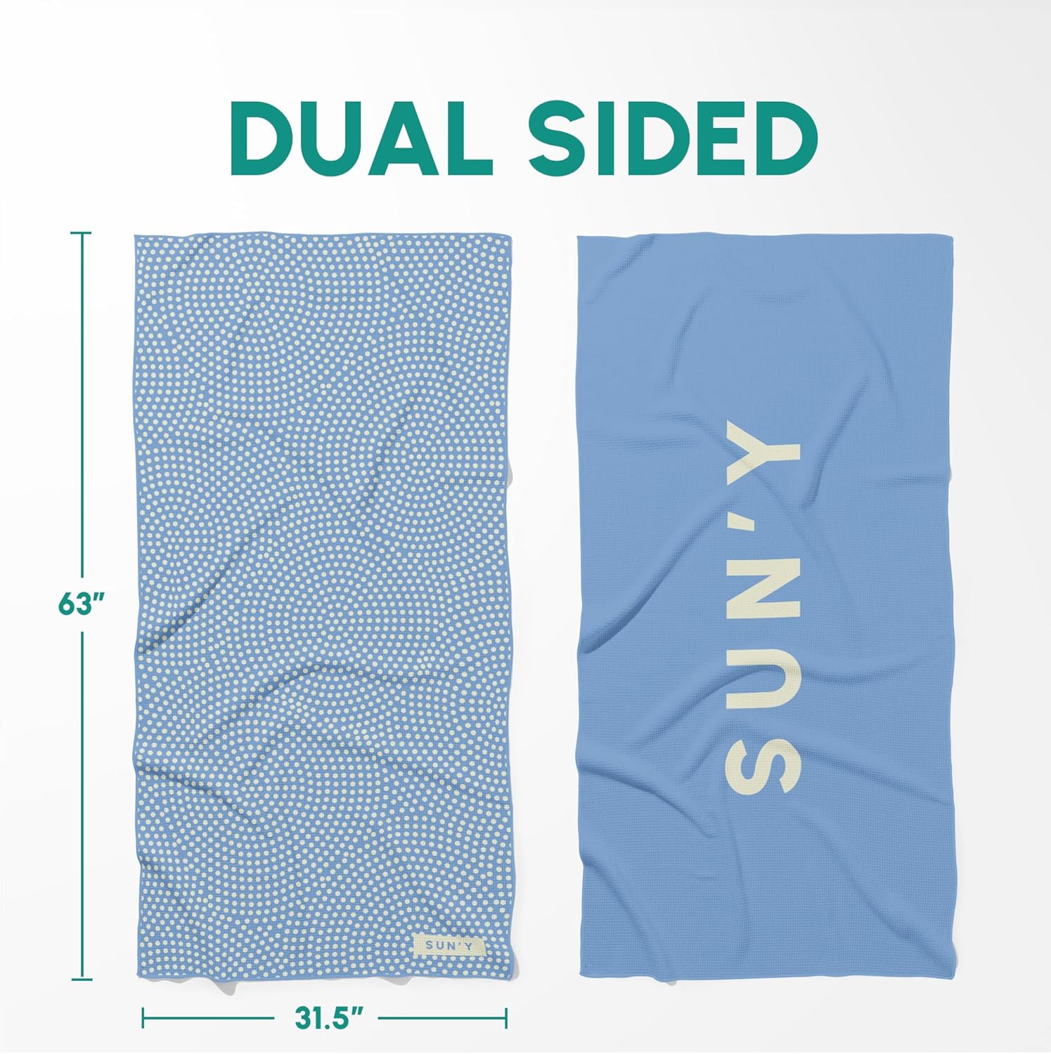 - SAND FREE BEACH TOWEL: Our SUN'Y large microfiber beach towels keep the sand where it belongs—under your feet, not in your bag. Featuring innovative microfiber waffle towel technology, these sandless beach towels effortlessly repel sand, ensuring a hassle-free beach experience.