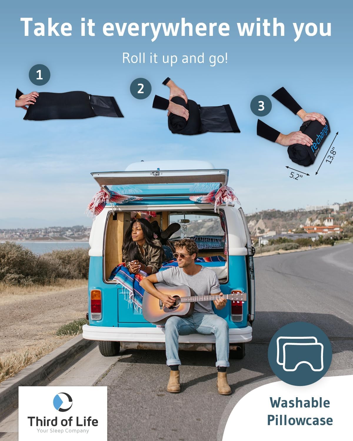 - OPTIMAL ERGONOMICS – No more sleepless nights at hotels and motels. No more twisting and turning in uncomfortable beds while visiting friends and family. No more neck pain when trying to fall asleep in a long-distance flight. Our all-in-one memory foam pillow re-charge is your perfect travel companion and comes with a sturdy and easy-to-use travel bag.
