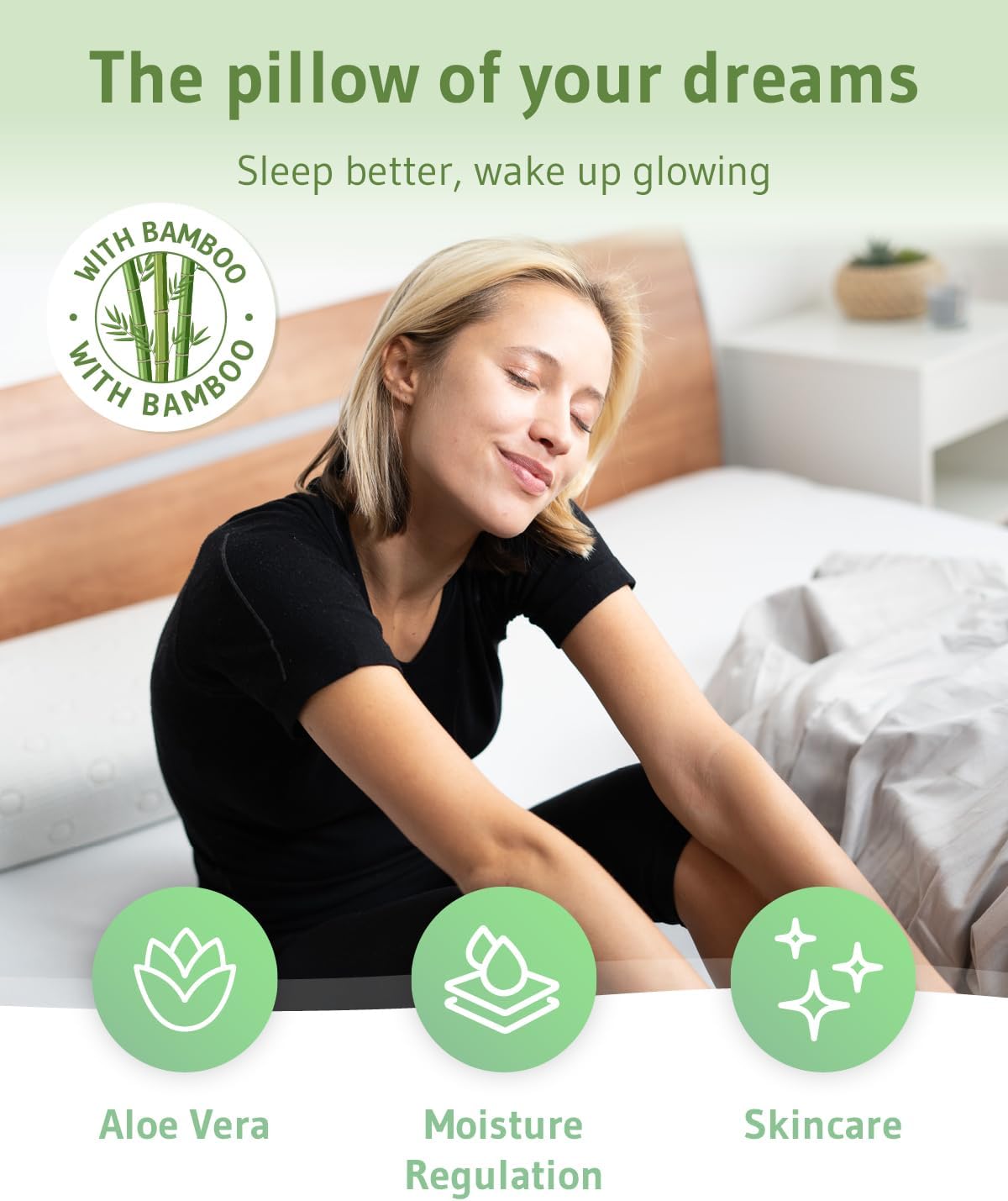 - SKIN CARE PILLOWCASE – Natural aloe vera extract in the cover soothes and nourishes the skin while the natural and temperature-regulating viscose helps keeping your skin healthy - A great skin care routine while you sleep.