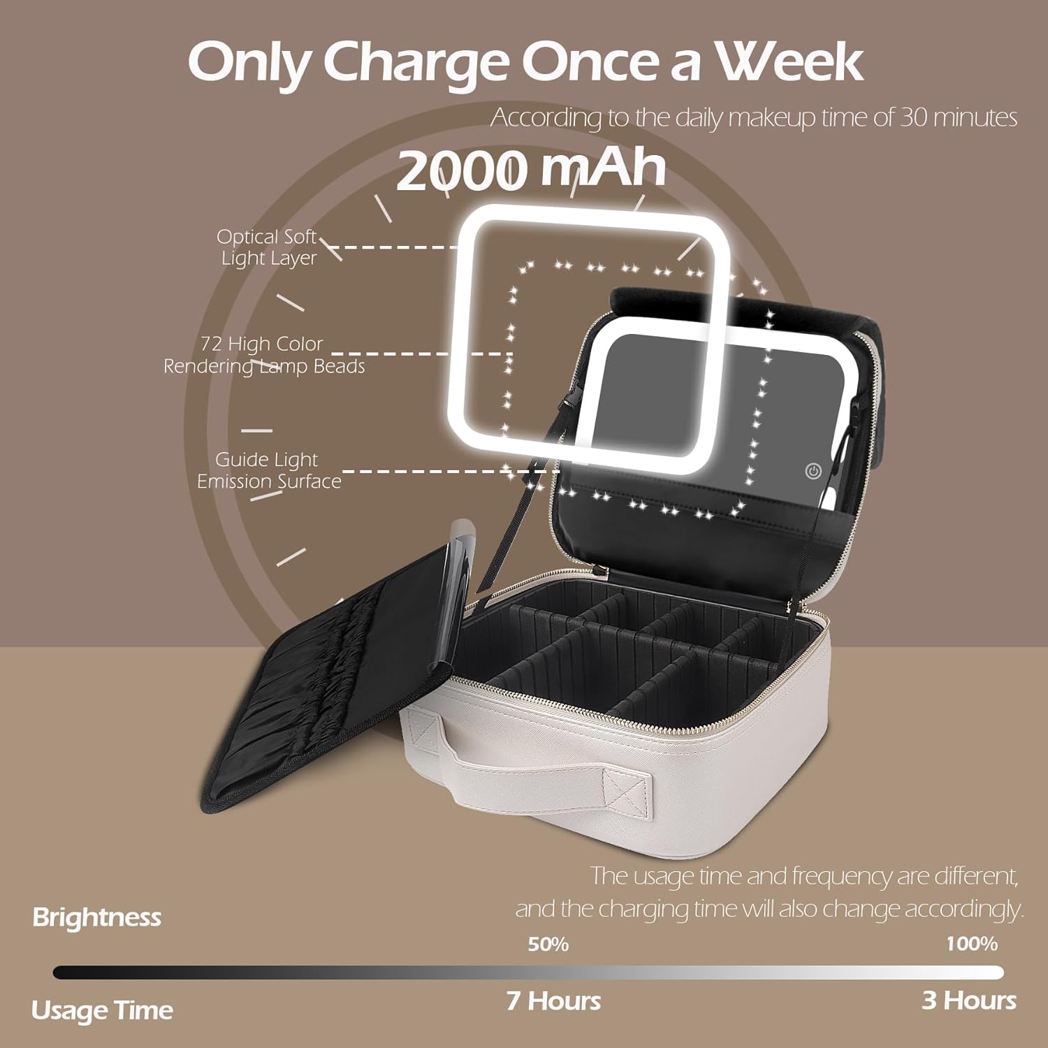 MOMIRA Travel Makeup Bag Cosmetic Bag Makeup Organizer Bag with Lighted Mirror, Adjustable Brightness in 3 Color Scenarios, Waterproof Makeup Train Case, Gift for Women - Khaki