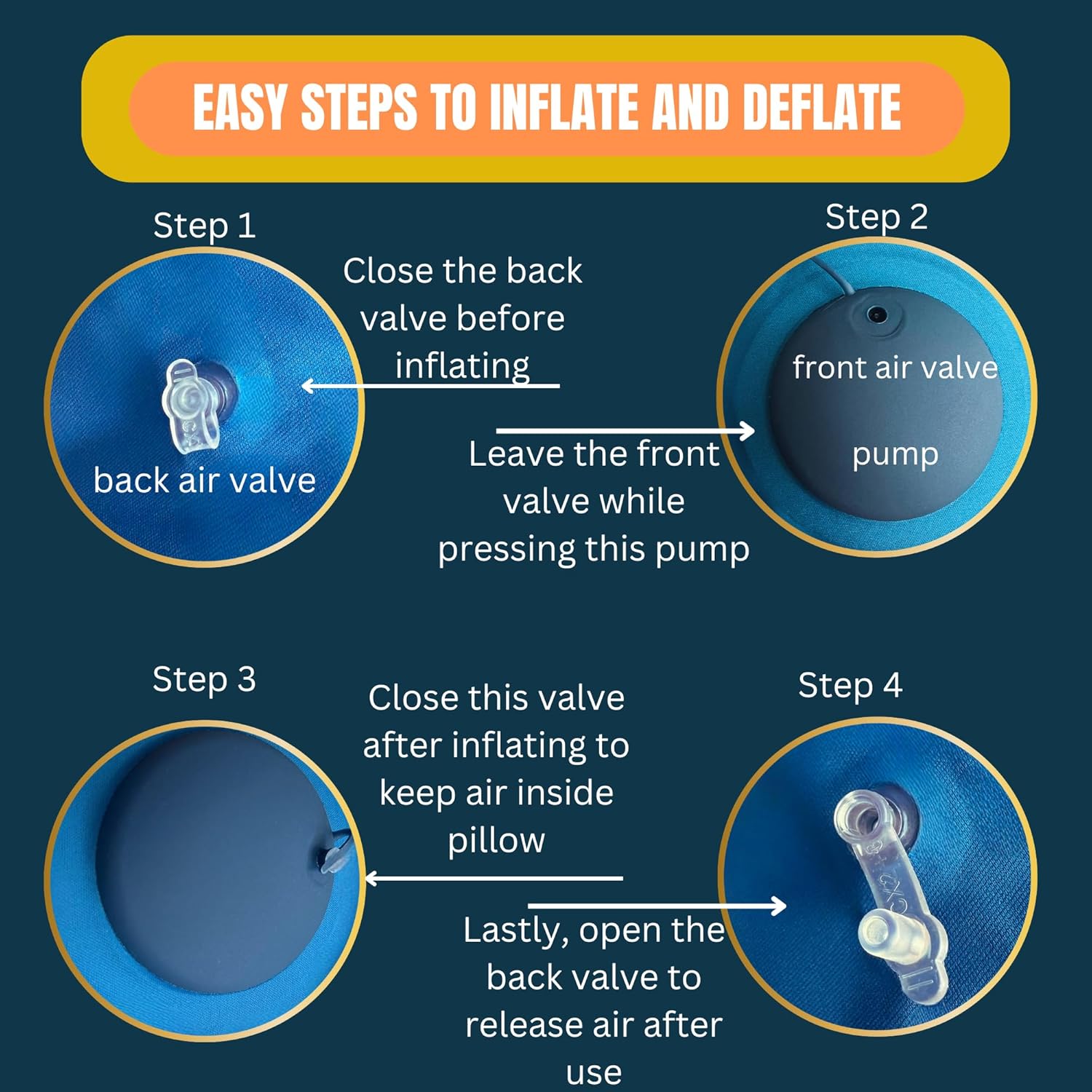 - Modern Press Pump Feature: This inflatable travel pillows for airplanes, cars, buses, trains and so on, is self inflatable, no need for the traditional mouth inflation. Enables controlled puffiness.