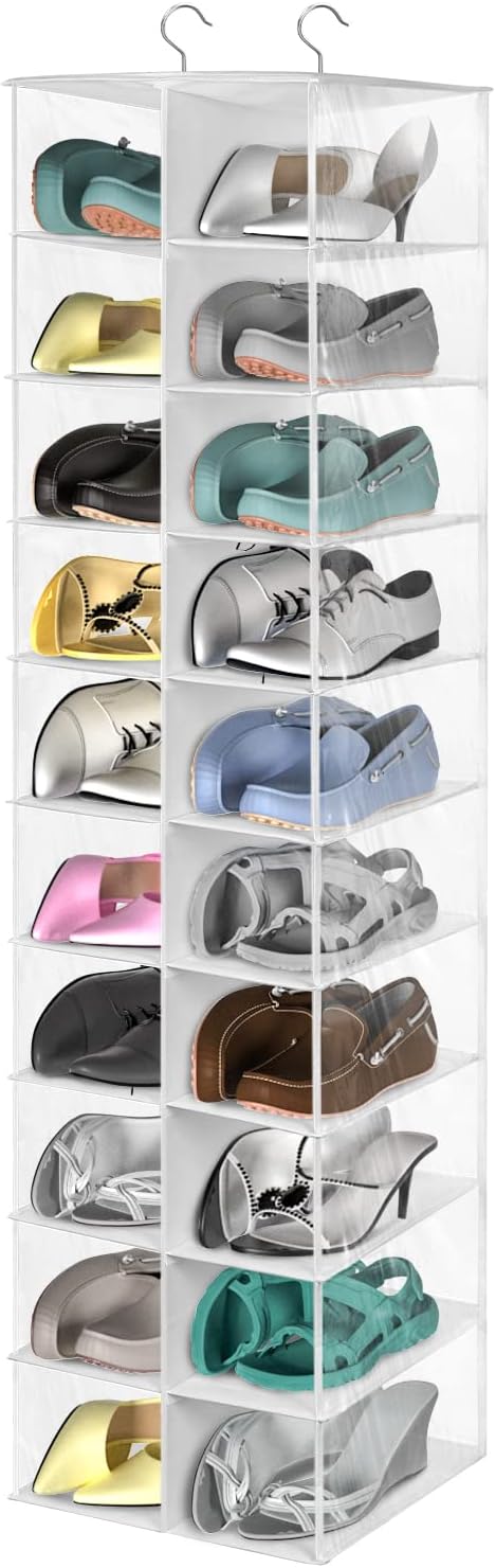 coastal rose Hanging Shoe Organizer for Closet, 20 Sections Hanging Closet Organizers and Storage Shelves, Space Saving Shoe Storage Rack Holder, Transparent White, 12''W×12''Dx 50''H