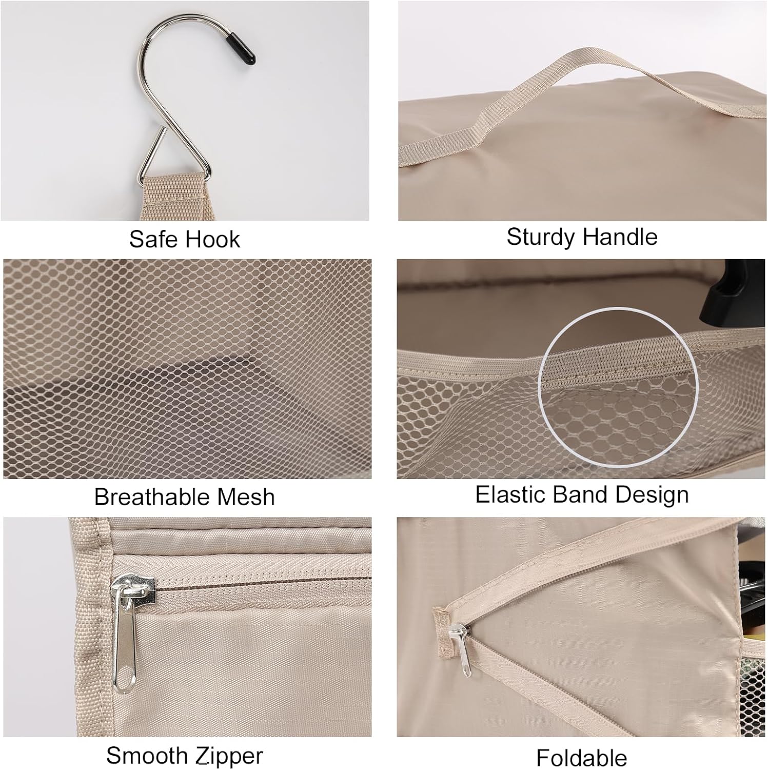 TABITORA Travel Portable Hanging Shelves Closet Organizer Packing Luggage Storage with Multifunctional and Foldable Invisible Compartment,Lightweight, for Suitcase, RV,Closet…Beige,XXL