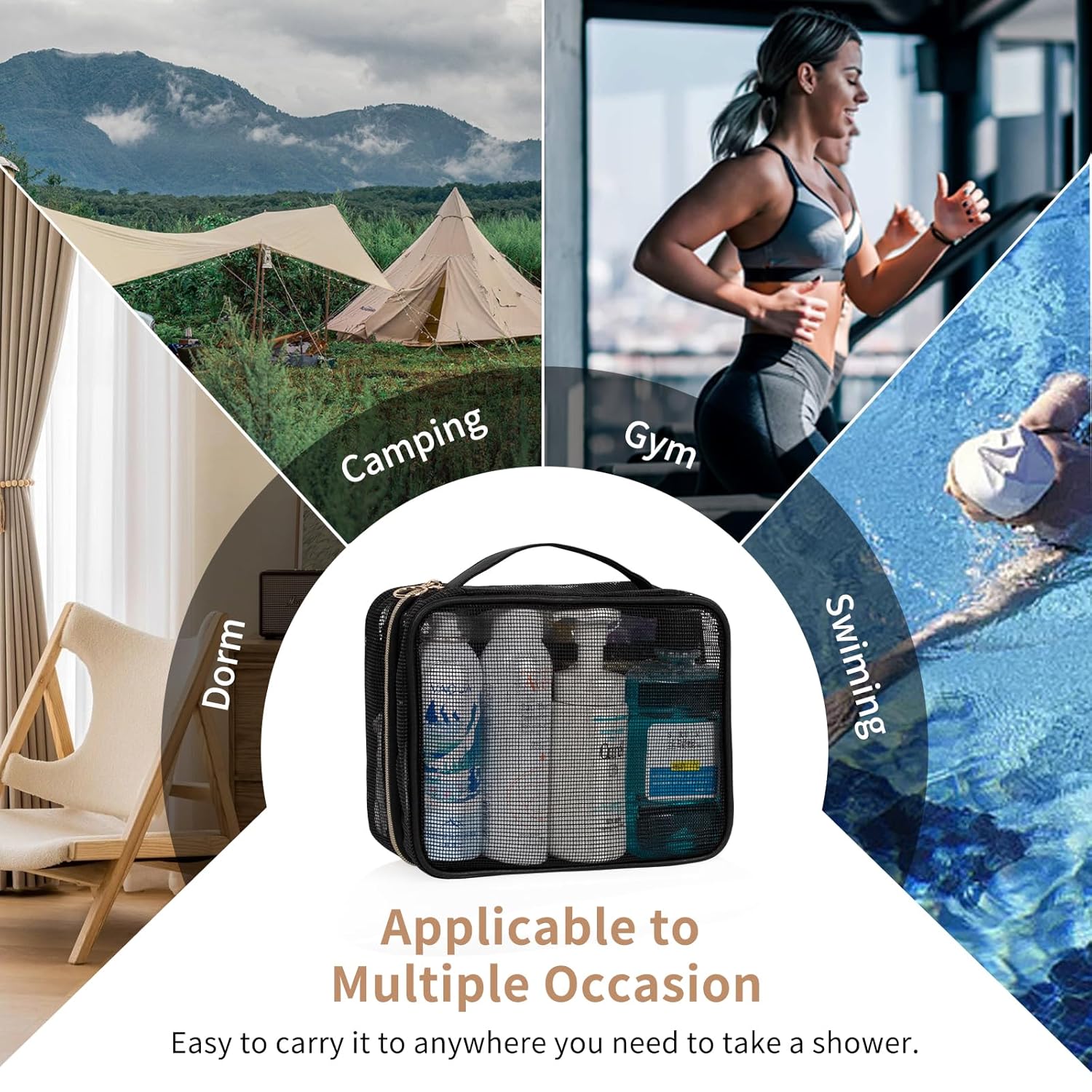 - Versatile —— Perfect mesh shower caddy bag for college dorms, bathrooms, gym, shower, swimming pool, and travel.
