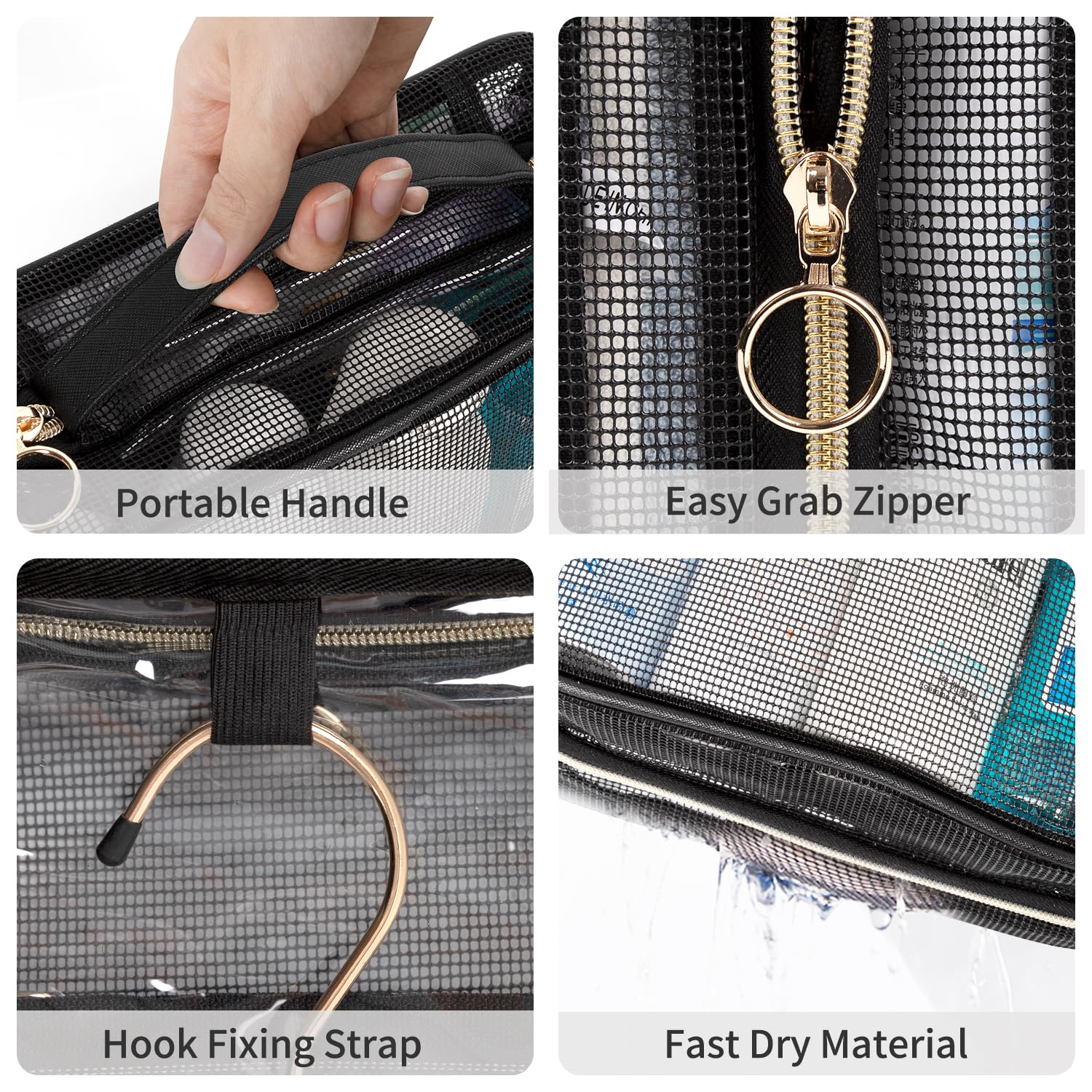 - Perfect for College Dorm Room —— This mesh shower caddy bag is easily to carry by the portable durable handle. And you can hang the toiletry bag to anywhere with the large strong metal 360° hanging hook.