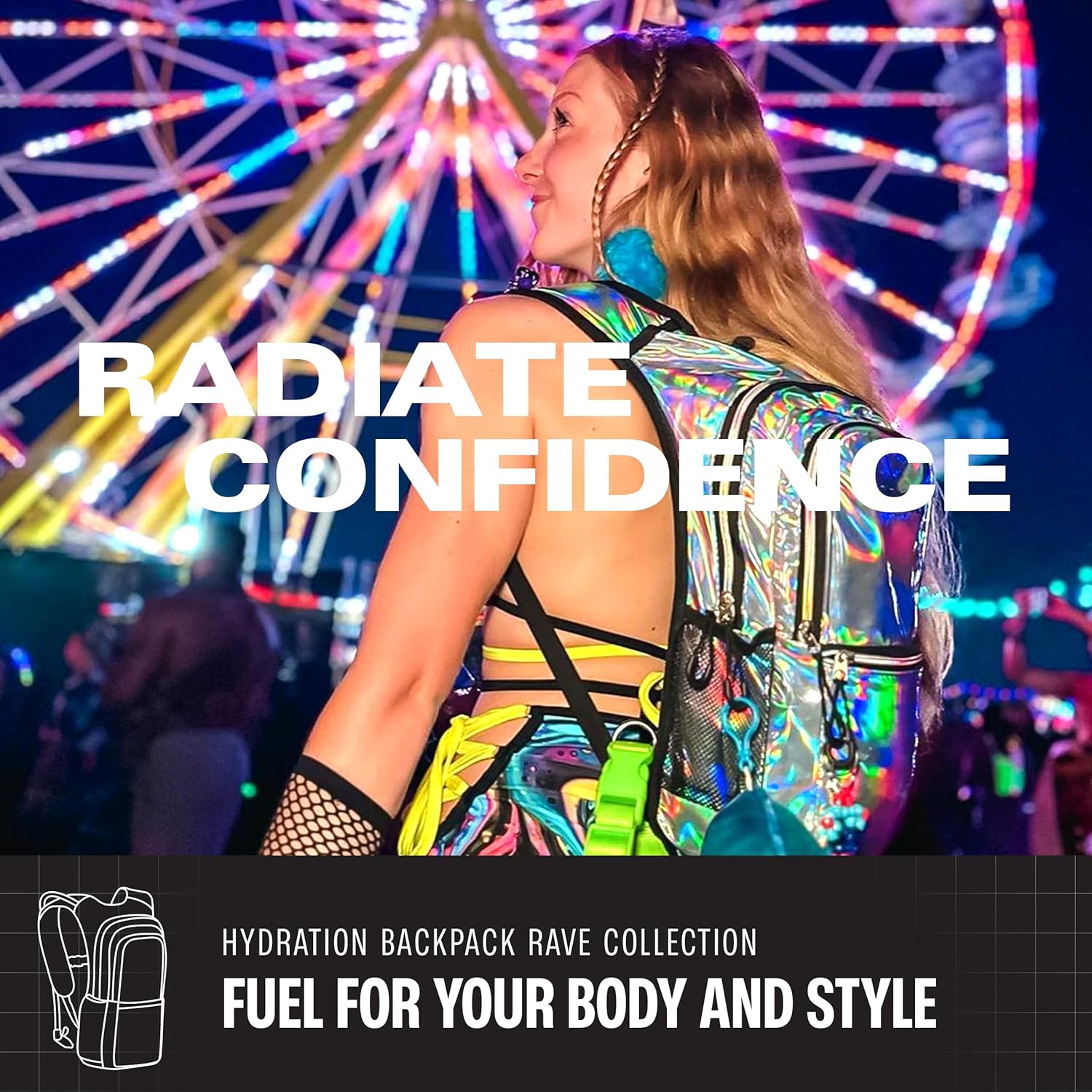 - FUN DESIGNS & COLORS = If you are tired of boring hydration pack backpack then our bright colors, unique styles & patterns are for you. Stand out at your next music festival, rave, edm or edc event with our rave essentials.
