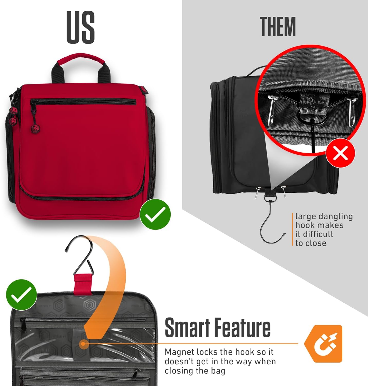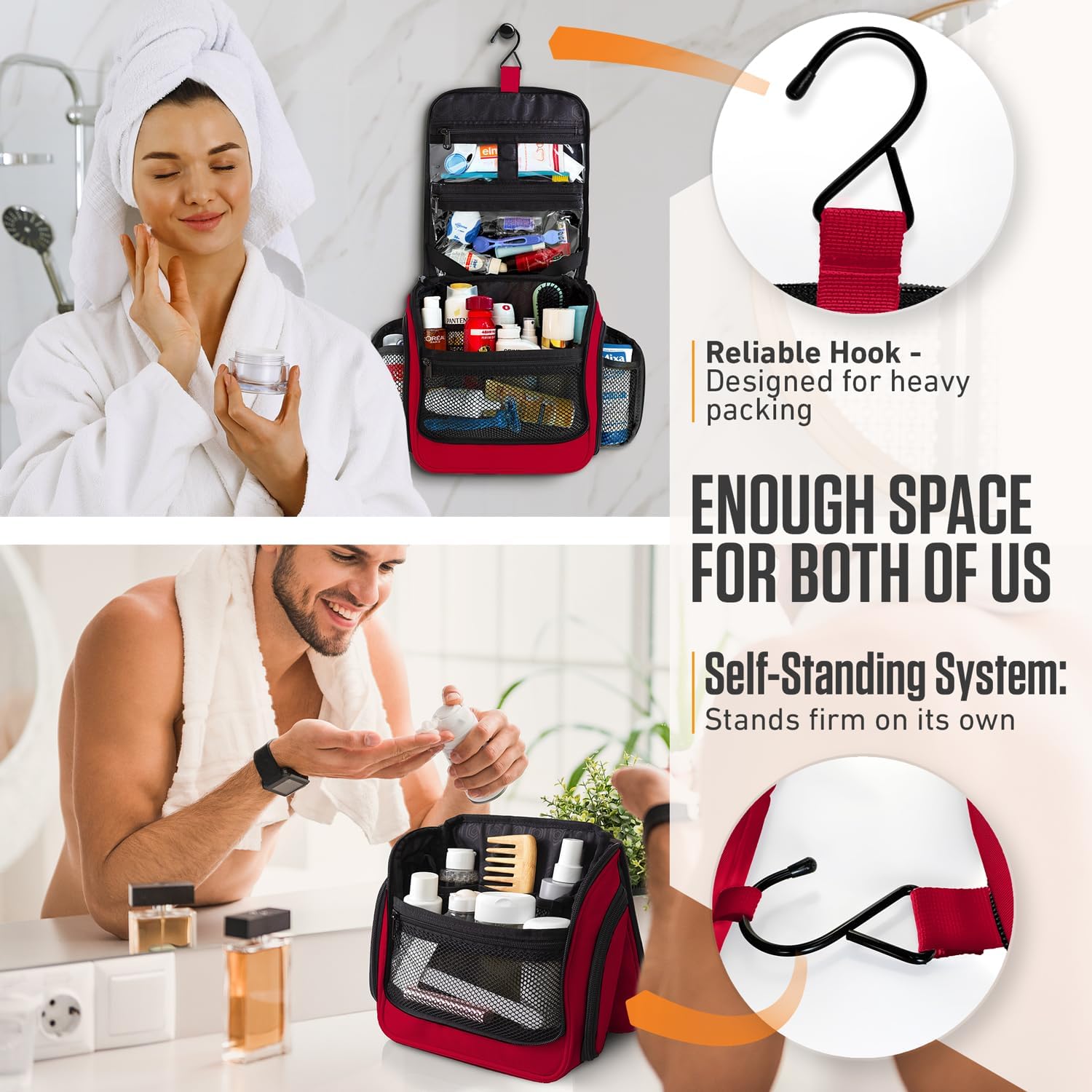 VENTURE 4TH Hanging Travel Toiletry Bag for Women & Men - Travel Organizer with Expandable Compartments & Removable Clear Pouch for Toiletries (Red)