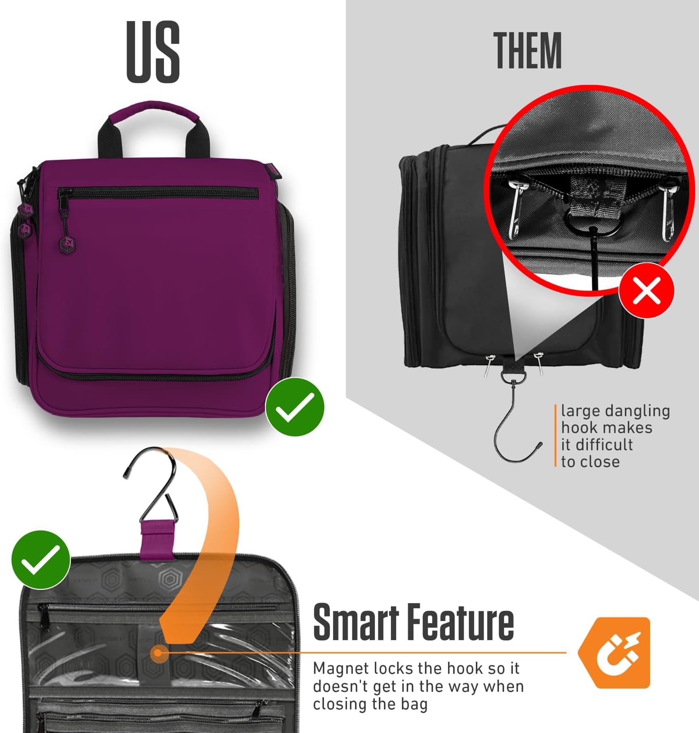 VENTURE 4TH Hanging Travel Toiletry Bag for Women & Men - Travel Organizer with Expandable Compartments & Removable Clear Pouch for Toiletries (Purple)