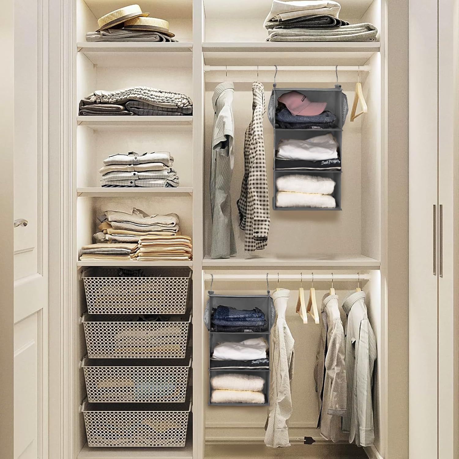 - HANGING SWEATER SHELVES -Our hanging closet organizer has open shelves window. you can stack them or place them side by side for more flexibility. making it quick and easy to pull shoes, shirts, and accessories out of the organizer's shelves.
