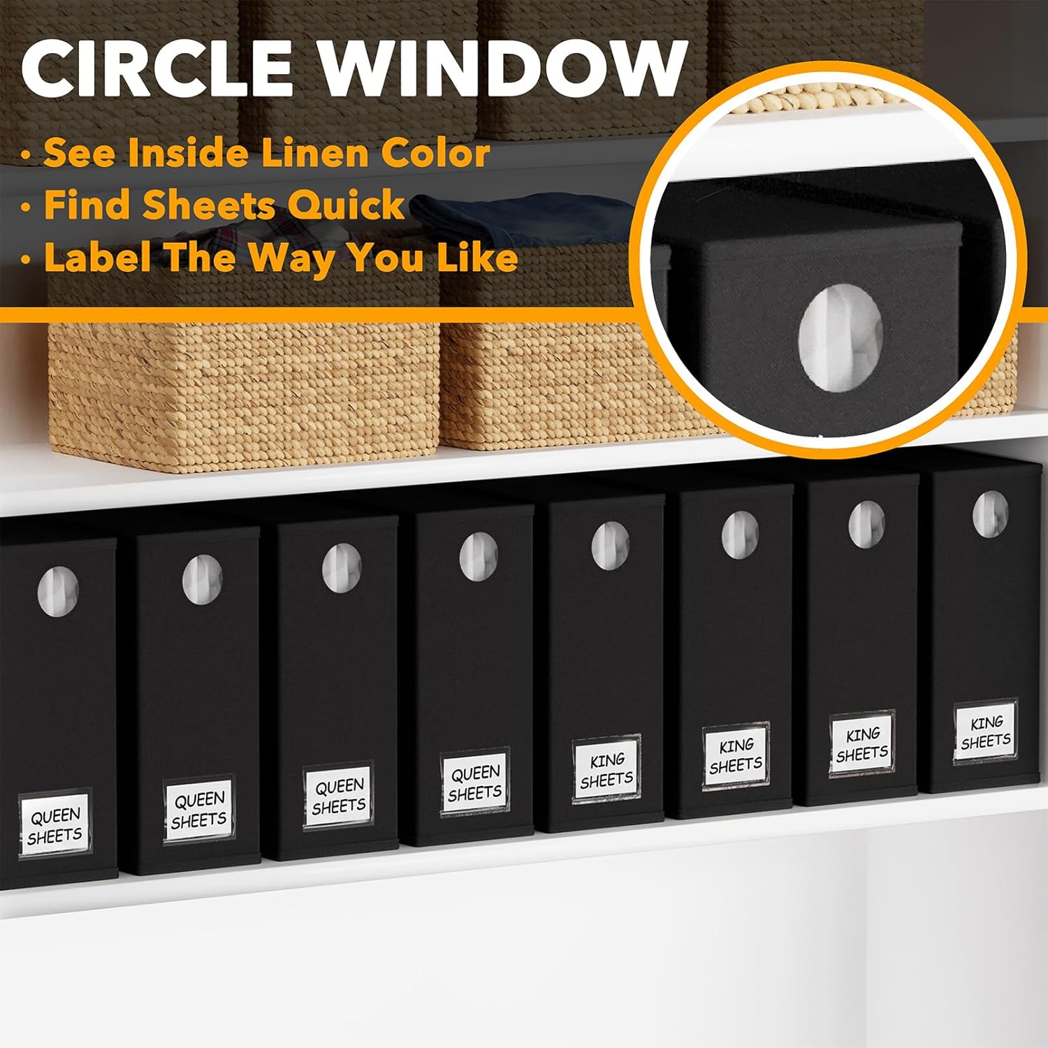 - BLACK SHEET ORGANIZERS 8 PACK - Make your linen closet organized and beautiful with this foldable bed sheet fabric organizer; Each Storage Organizer SIZE: 5"W x 15"D x 12.8"H