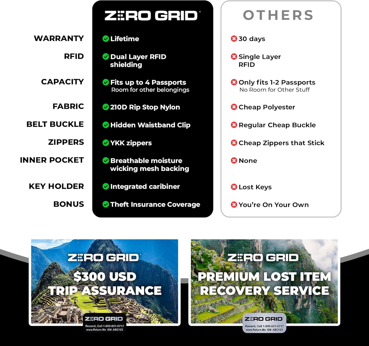 - **TWO BONUSES** EXCLUSIVE $300 TRIP ASSURANCE: In the event items are lost from this blanket, we will reimburse you up to $300. This portable blanket gives you Complete Peace of Mind! GLOBAL LOST & FOUND TAGS - Each Zero Grid Travel Blanket includes 2 Recovery Tags from ReturnMe, the worldβs largest lost & found company. Stick these on your phone, laptop, etc and their 24/7 call center will help return lost items from anywhere. By purchasing from Zero Grid, this service is FREE for LIFE!