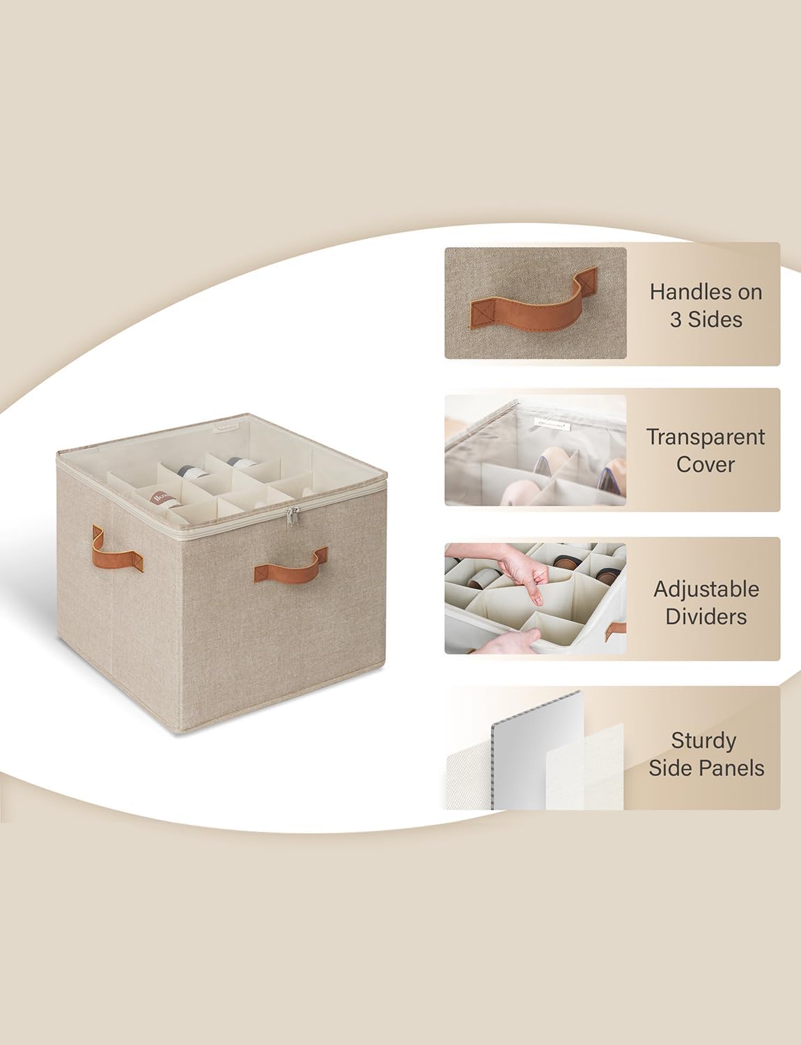 StorageWorks Shoe Organizer for Closet, Fits up to 16 Pairs, Shoe Cubby Storage Containers with Adjustable Dividers and Clear Cover, Mixing of Brown & Beige