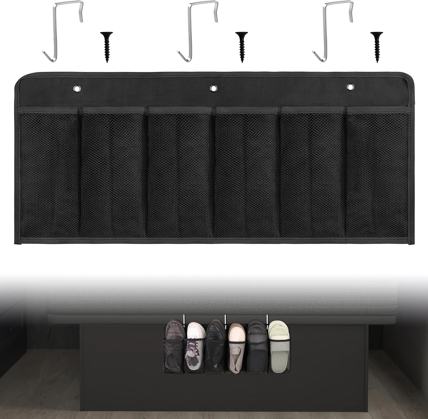 - EASY TO INSTALL: Equipped with 3 hooks and 3 screws, you can hang the shoe organizer on the bed frame or use screws to fix it, save your space, and can be folded when not used