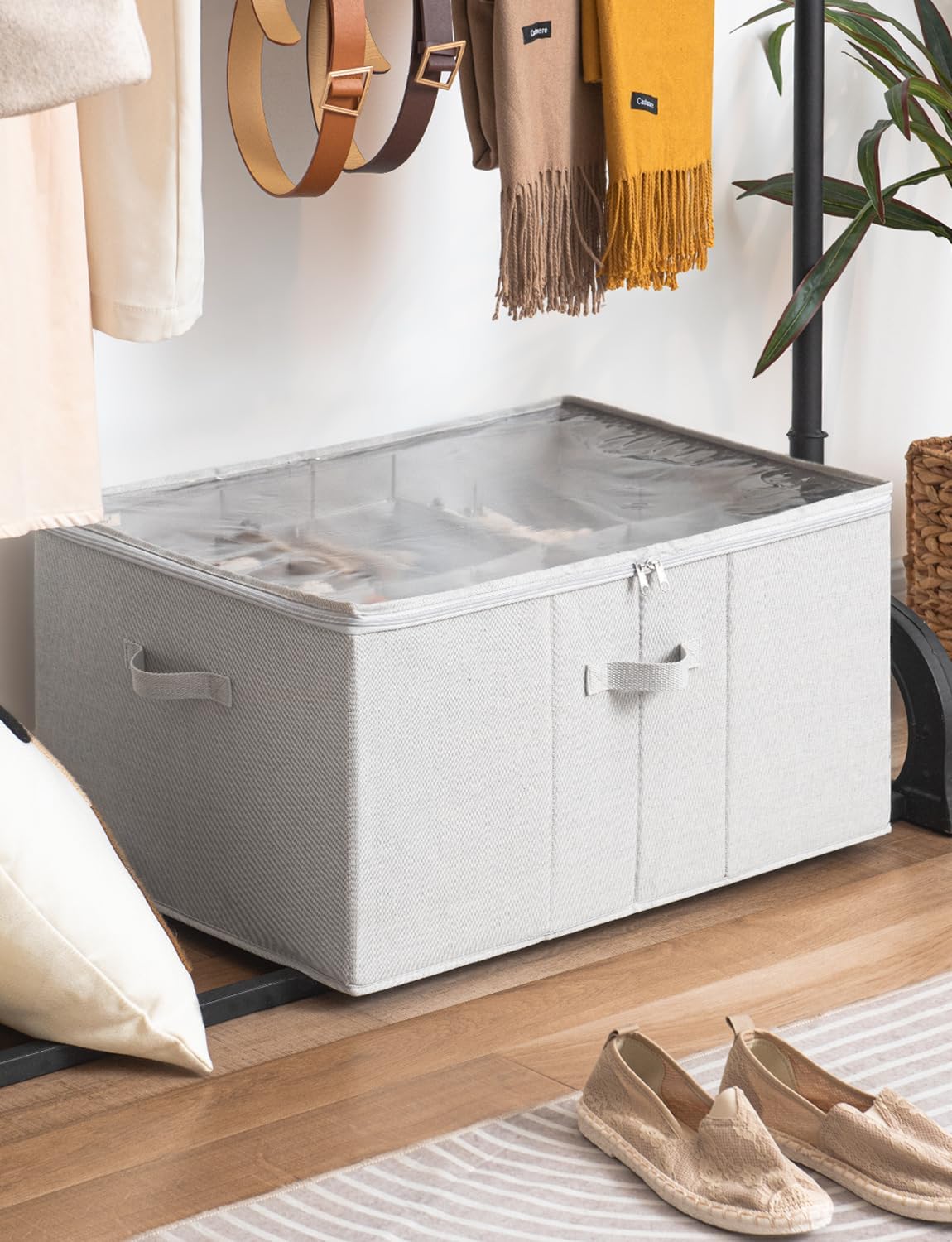 StorageWorks Shoe Organizer for Closet, Fits up to 24 Pairs, Shoe Cubby Storage Containers with Adjustable Dividers and Clear Cover, Grey