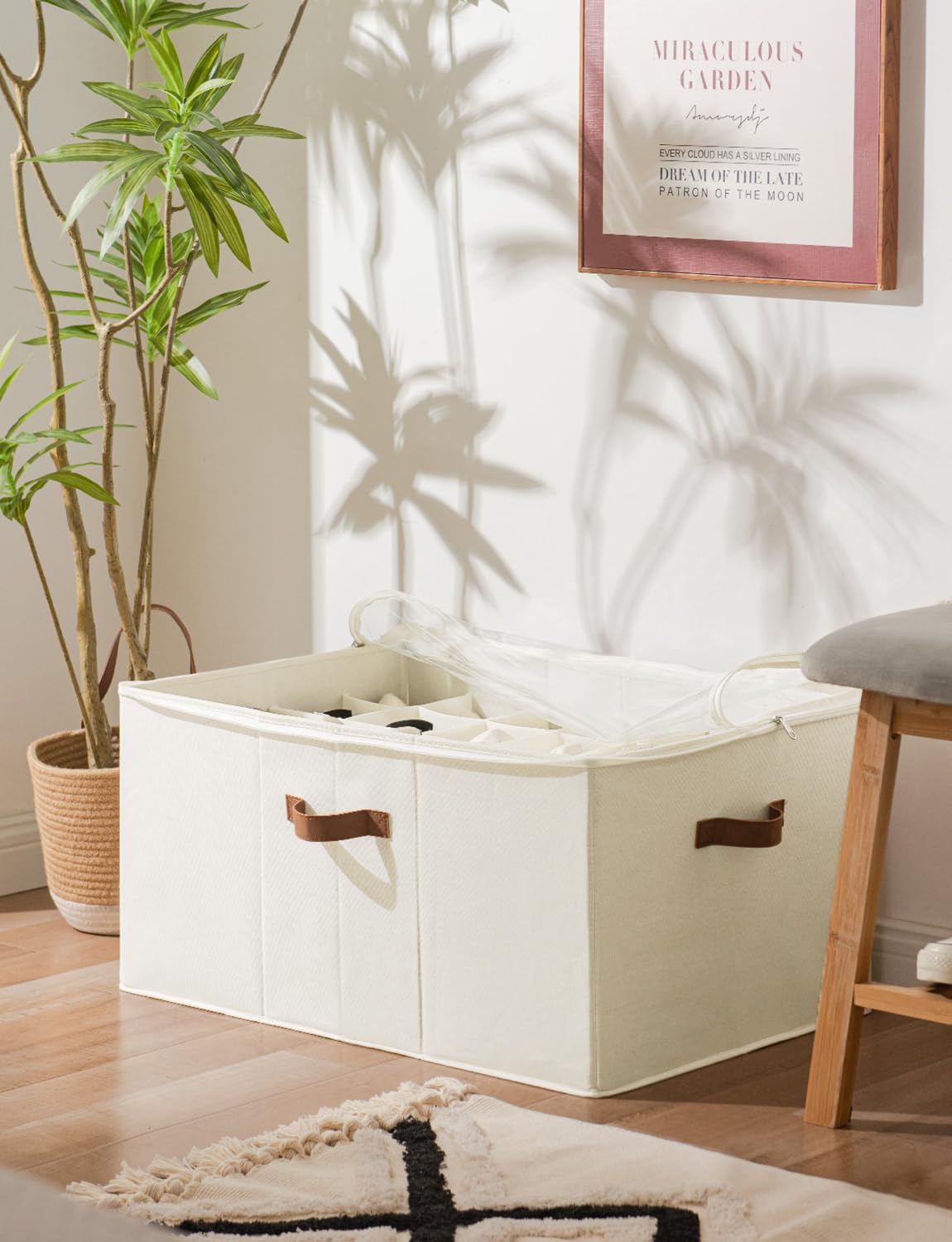 StorageWorks Shoe Organizer for Closet, Fits up to 24 Pairs, Shoe Cubby Storage Containers with Adjustable Dividers and Clear Cover, Beige