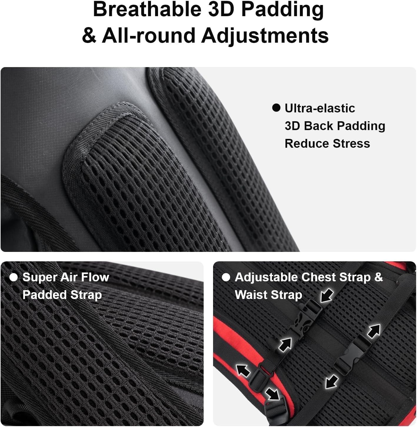- HIKING/CYCLING/RUNNING/SKIING WITH EASE: This 2 lbs lightweight water backpack features an ultra-elastic 3D breathable padded back, adjustable chest and waist straps to provide comfort and stability for all body sizes. This day pack has got you covered for all your adventures.