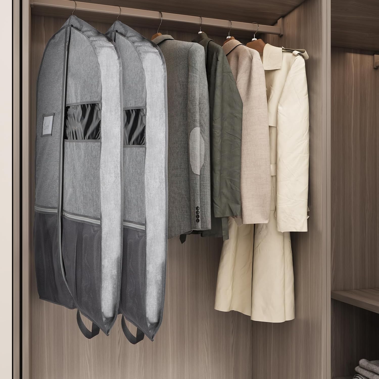 Zilink Heavy Duty Garment Bags for Travel 43”Suit Bags for Hanging Clothes Waterproof Gusseted Suit Cover Bags for Closet Storage with Handles for Suits Coats Jackets Dresses, Set of 2