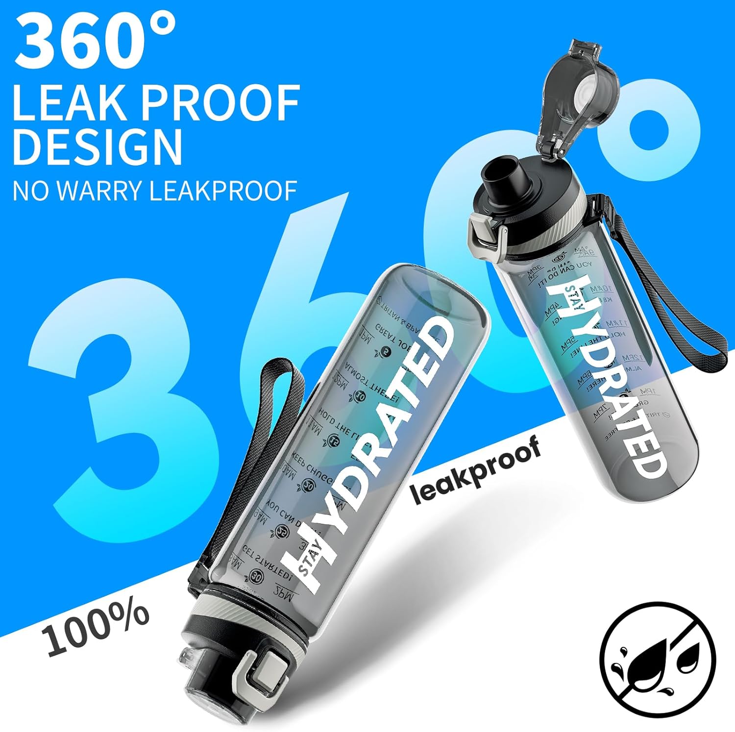 - Portable Fashion Design: The 32 oz/1 liter water bottles are suitable for all occasions and people. Whether it is men, women, girls or boys, it can be used in indoor and outdoor. Especially a HYDRATION WATER BOTTLE for school, gym, workout, hiking, cycling, and running! We come with a cleaning brush and nice packaging. Whether it is for personal use or as a gift, it is a good choice
