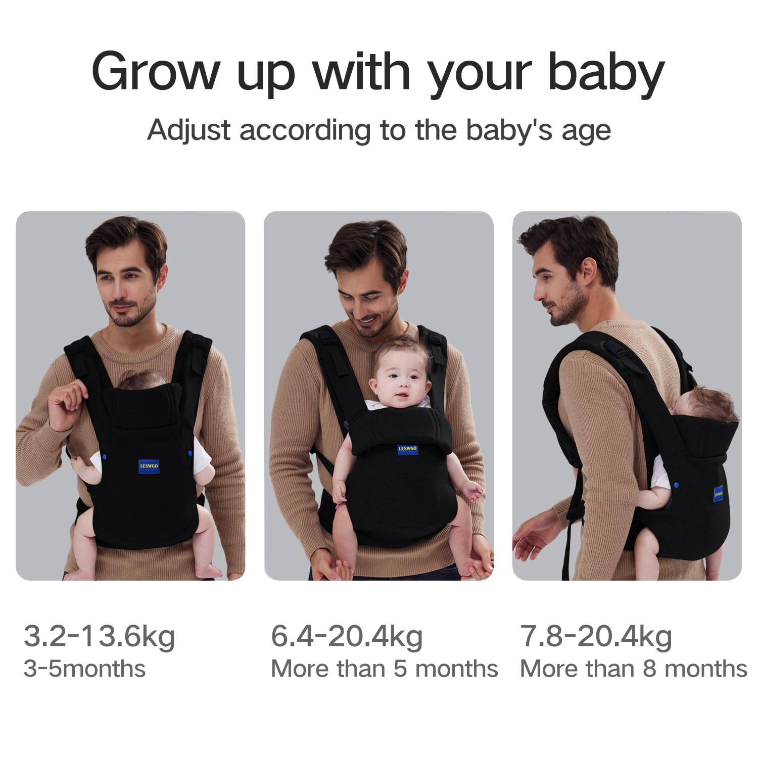 - Design NEWBORN Carrier with head support:Our baby wrap carrier with structure support design and innovative Hook&Loop design,Different from a complicated baby carrier with no support and traditional carrier not comfy for newborns.Ours combines the convenience of a traditional quick buckle-up carrier with the comfortability of the cross-back support of the wrap.easily adjustable size as your baby grows (weighing between 7-44 pounds ), bringing a more comfortable fit