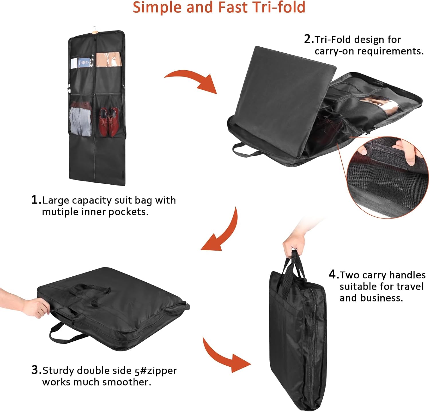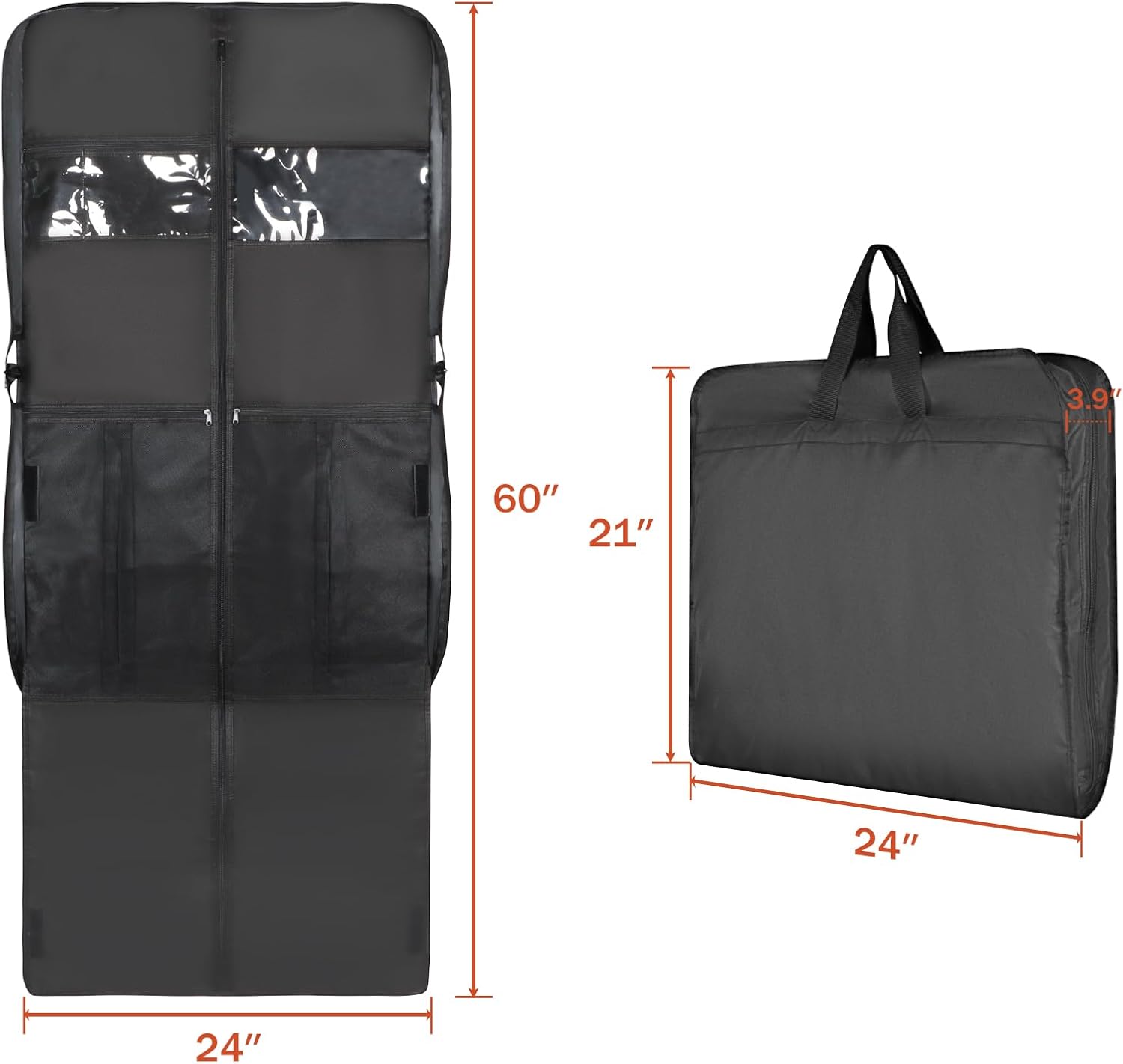 - 【 Transparent Window 】The carry on dress bag includes a large transparent viewing window and two built-in small PVC pockets next to it, make it easy to identify and organize your clothes and accessories.