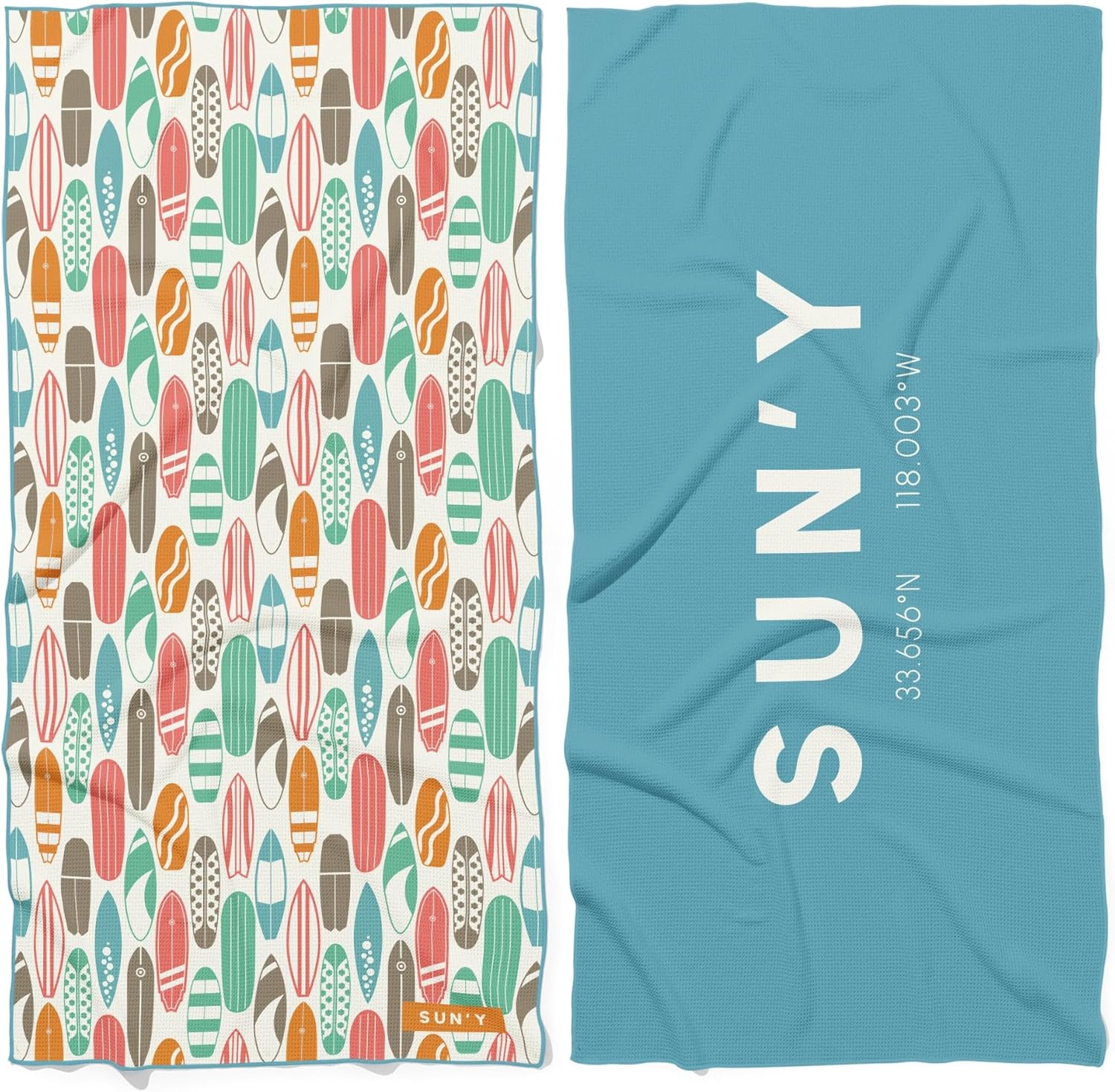 SUN'Y Waffle Microfiber Beach Towel – Sand Free, Quick Dry, Ultra Absorbent, Lightweight & Compact Travel Towel with Carry Bag - Large (63” x 31.5”), Huntington
