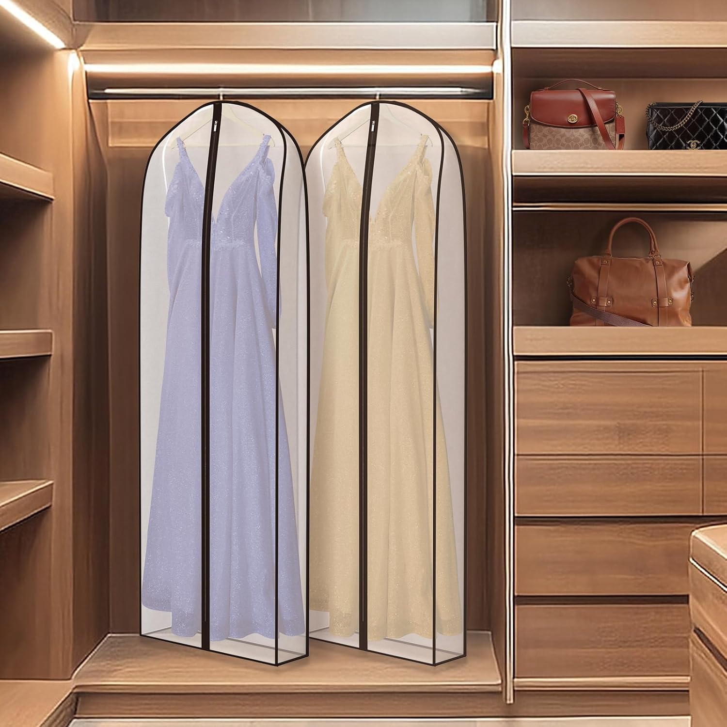 Zilink Breathable Dress Bags for Gowns Long 72” Wedding Dress Storage Bags Silky Dress Bags for Closet Storage with 7" Gussted Wrinkle Free for Long Evening Dresses Puffy Dress Storage, Set of 2