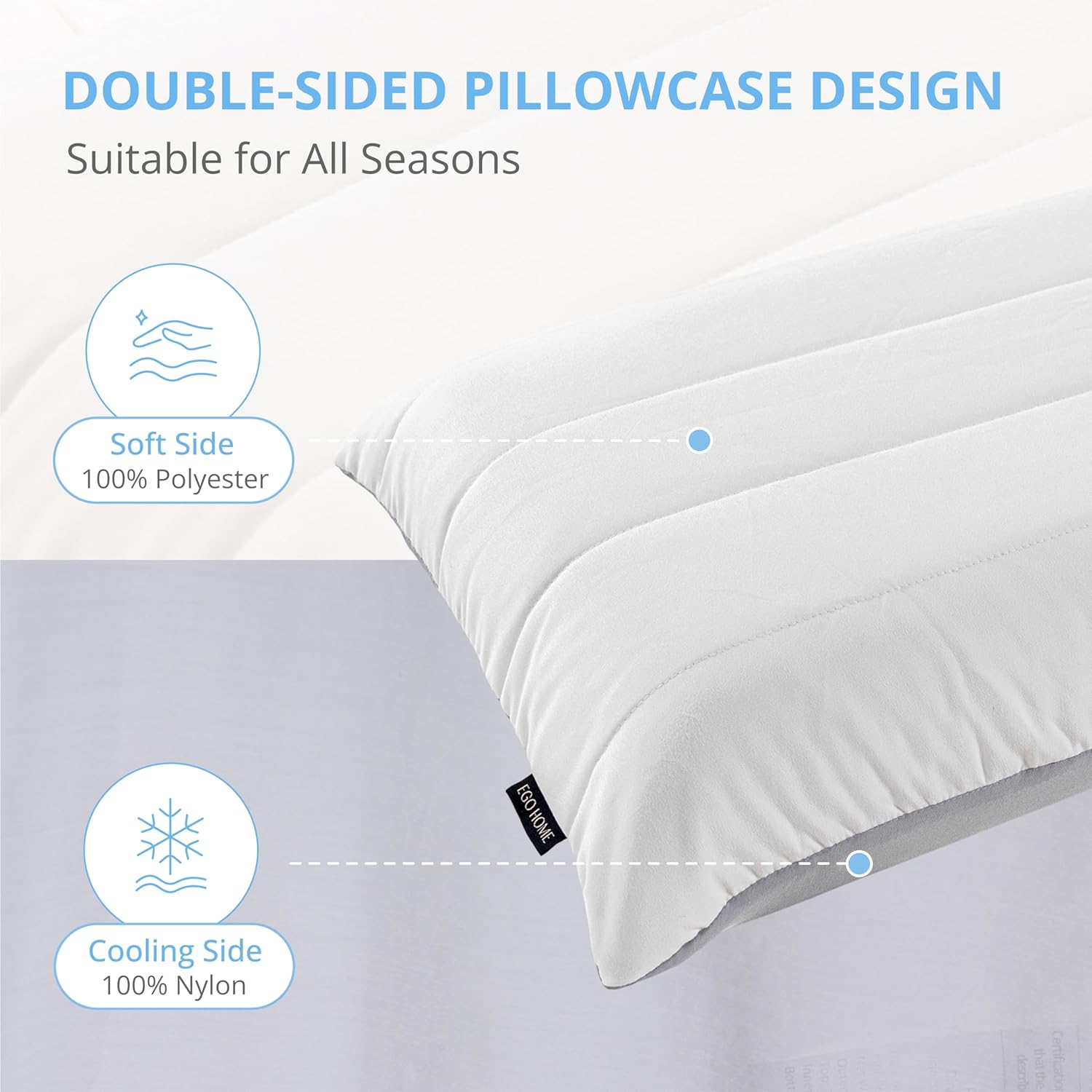 - 【Two-Sided All-Season Comfort】One side of the ergonomic pillow features ice silk cooling fabric that absorbs heat during sleep, while the reverse offers a comfortable warm surface. Enjoy cooling relief in hot weather and cozy warmth in cooler seasons for a personalized sleep experience.