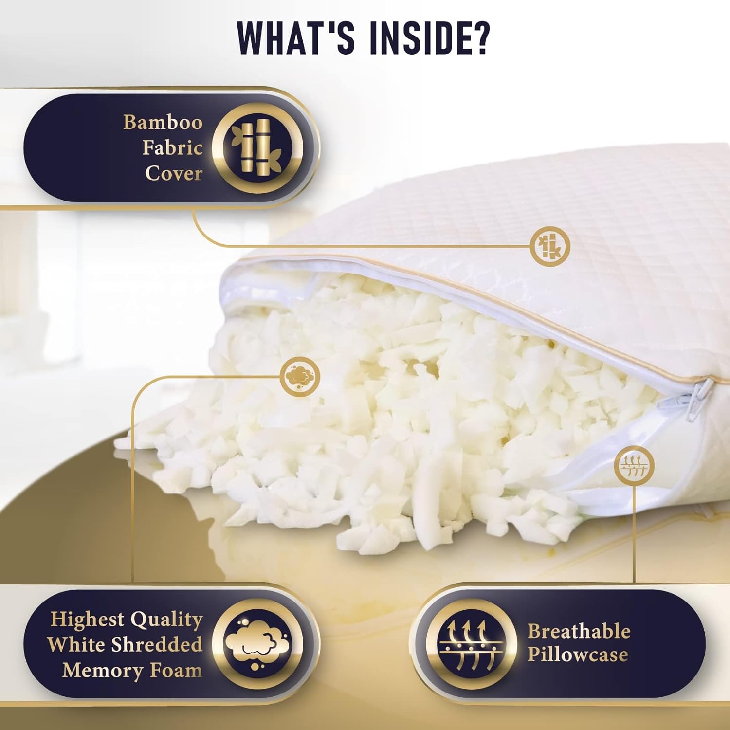 Royal Therapy 4-Pack King Memory Foam Pillow, Adjustable Shredded Pillow for Neck & Shoulder Pain Relief, Support for Back, Stomach, Side Sleepers
