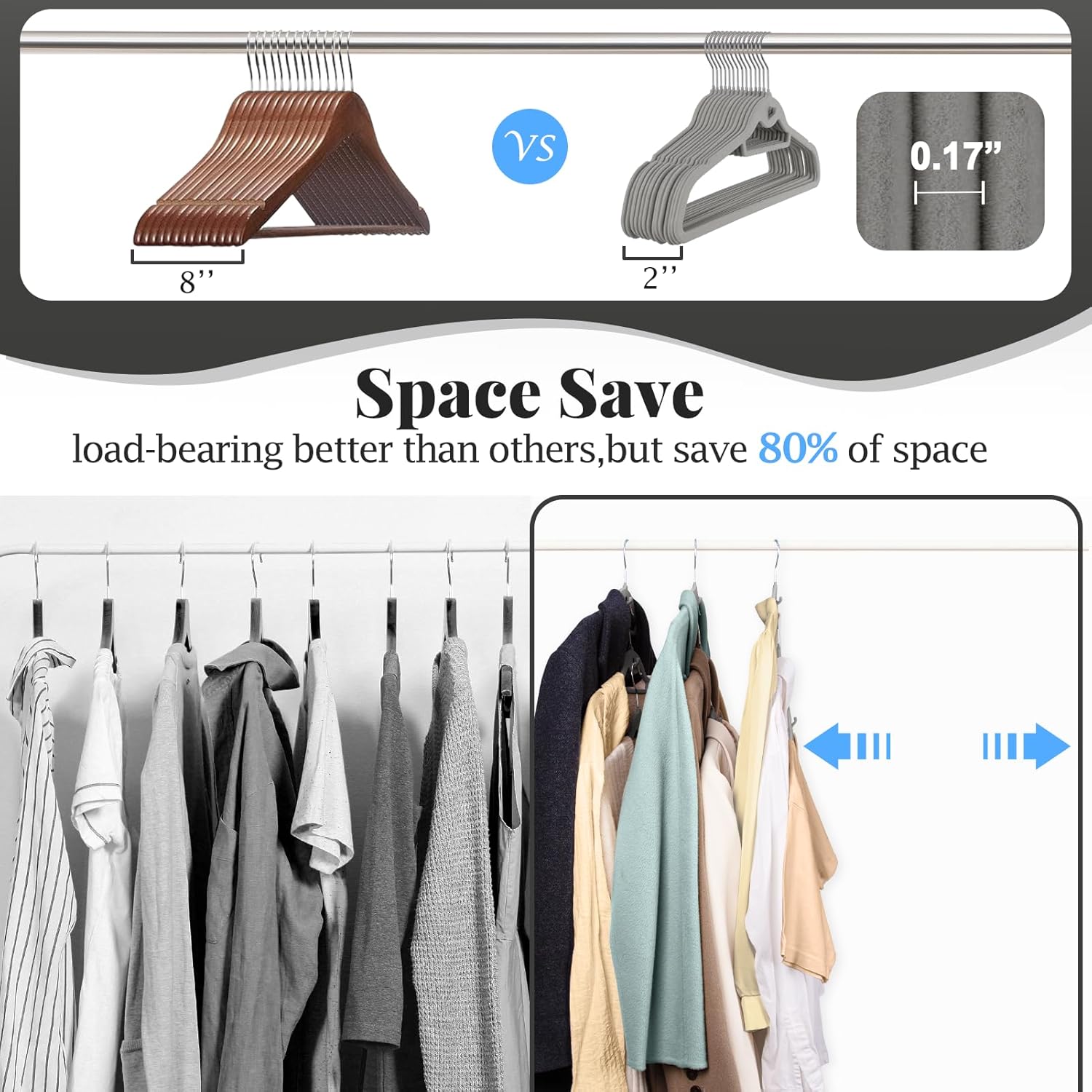 - Best surprise: Exquisite velvet hangers have a premium velvet coating and come with multifunctional details that save space and time. Say goodbye to the messy closet with this 50-pack hanger, tidy and stylish lifestyle is the surprise to your loved ones and friends