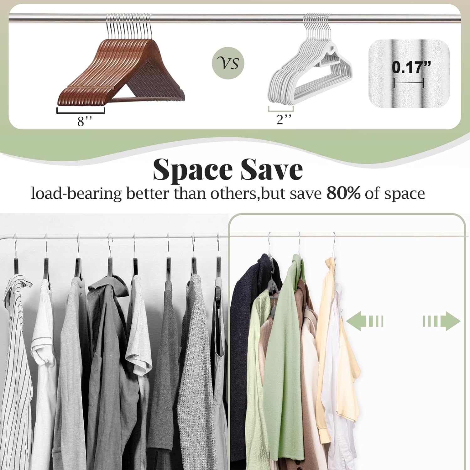 - 【Maximize space】- The UEAKPIC velvet hanger is only 0.17'' thick, thinner than 0.25'' thick hangers. With a stackable hook, the layered clothes hanger can save 80% of closet space. Let's enjoy the stylish hangers and say hello to the larger closet space!!