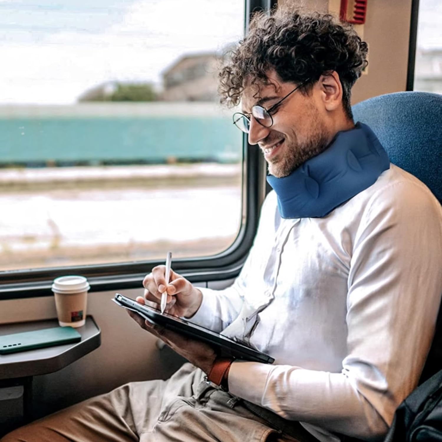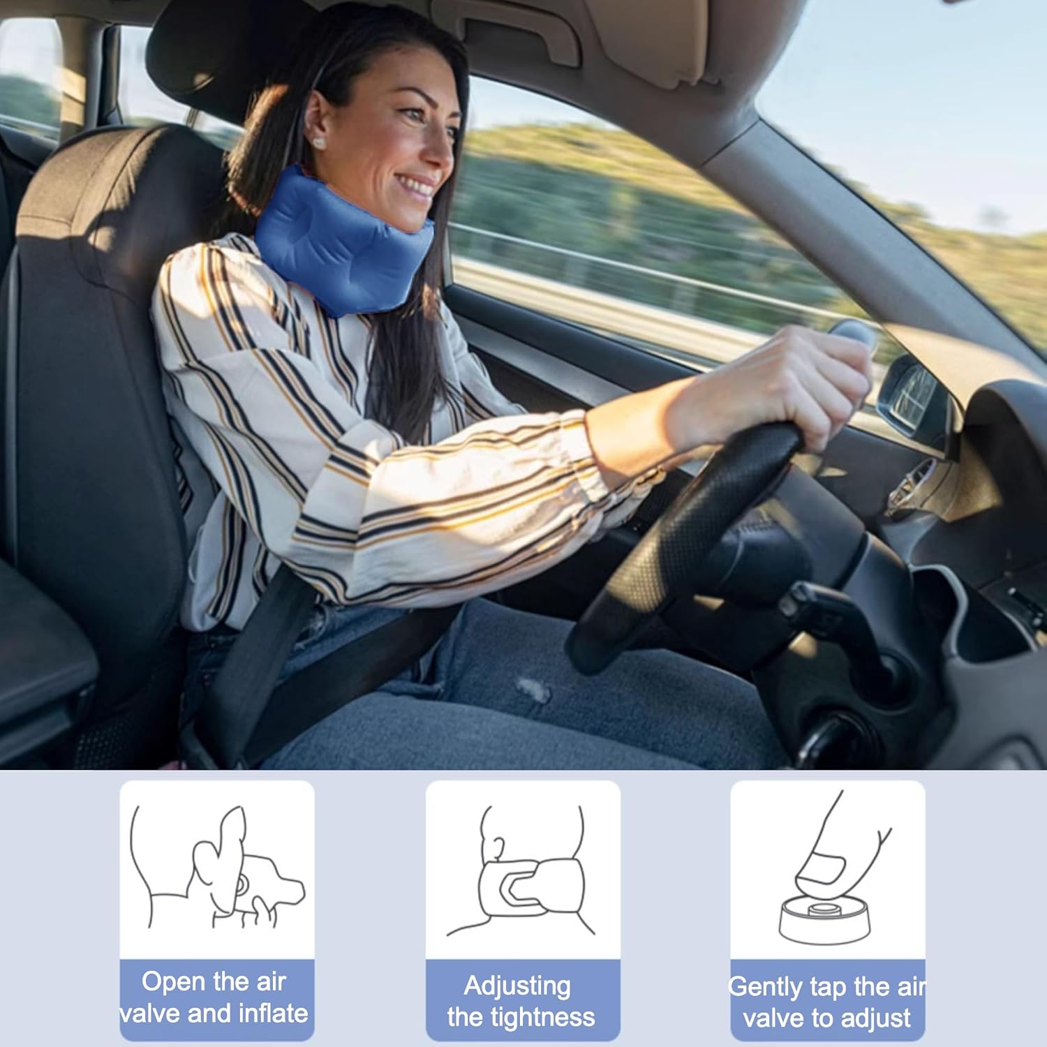 - Inflatable Travel Pillow for Airplanes delivers a harmony of plushness and support, will have you fully rest during travel and help relieve stiffness when work. It gently cradles your neck while softly supporting your head, to maintain good spinal posture and improve forward head.