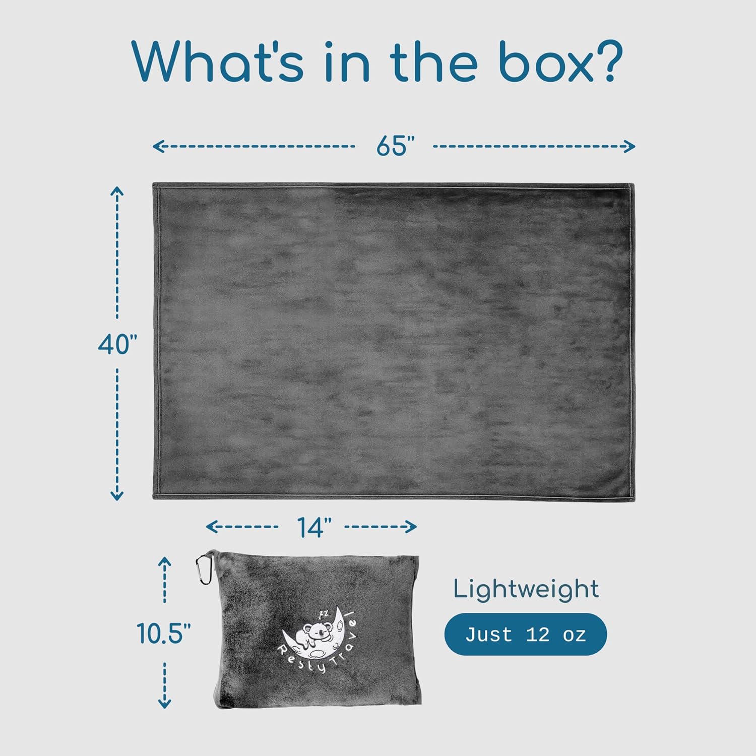Resty 65"x40" Traveling Airplane Blanket, Deep Gray – Lightweight, Velvety Soft Blanket That Becomes a Travel Pillow – Must-Have Comfort for Planes & Road Trips – Travel Essentials for Women & Men