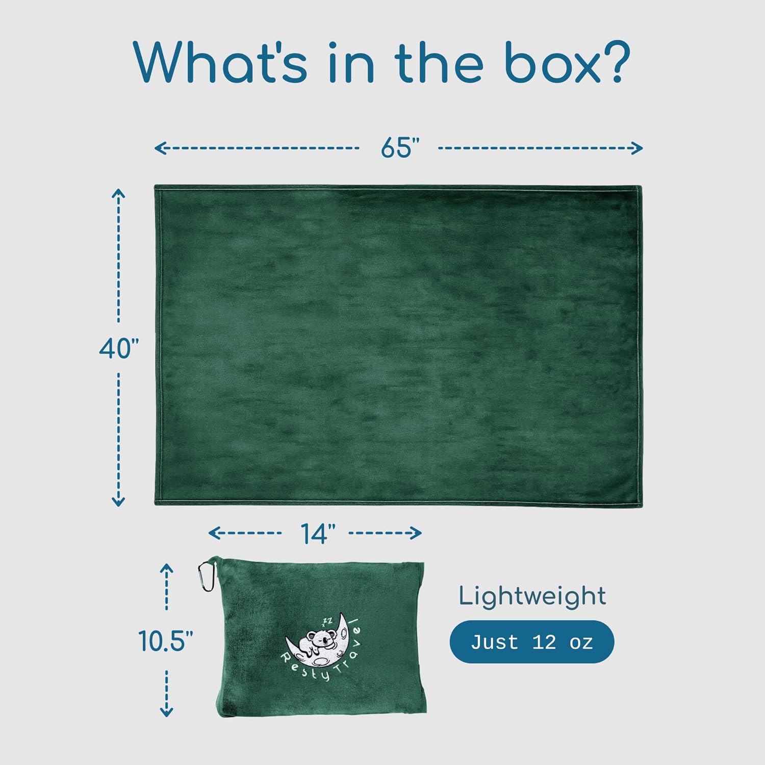 Resty 65"x40" Traveling Airplane Blanket, Forest Green – Lightweight, Velvety Soft Blanket That Becomes a Travel Pillow – Must-Have Comfort for Planes & Road Trips – Travel Essentials for Women & Men