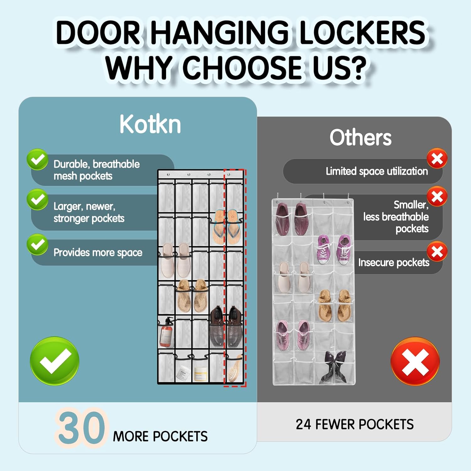 - 🥾【USE IN MULTIPLE SCENARIOS ACCORDING TO YOUR LOCATION】: This hanging shoe bag can be used not only in these places kitchen, baby room, bathroom, closet, foyer, bedroom, but also in pantry door, hall closet door, locker door, bi-fold door in your home, campsite, cruise ship, college dorms, classroom, traveling. Shoe rack includes 4 non-slip durable hooks, adjustable to fit doors 1.35"-1.75" thick, fits most doors perfectly.