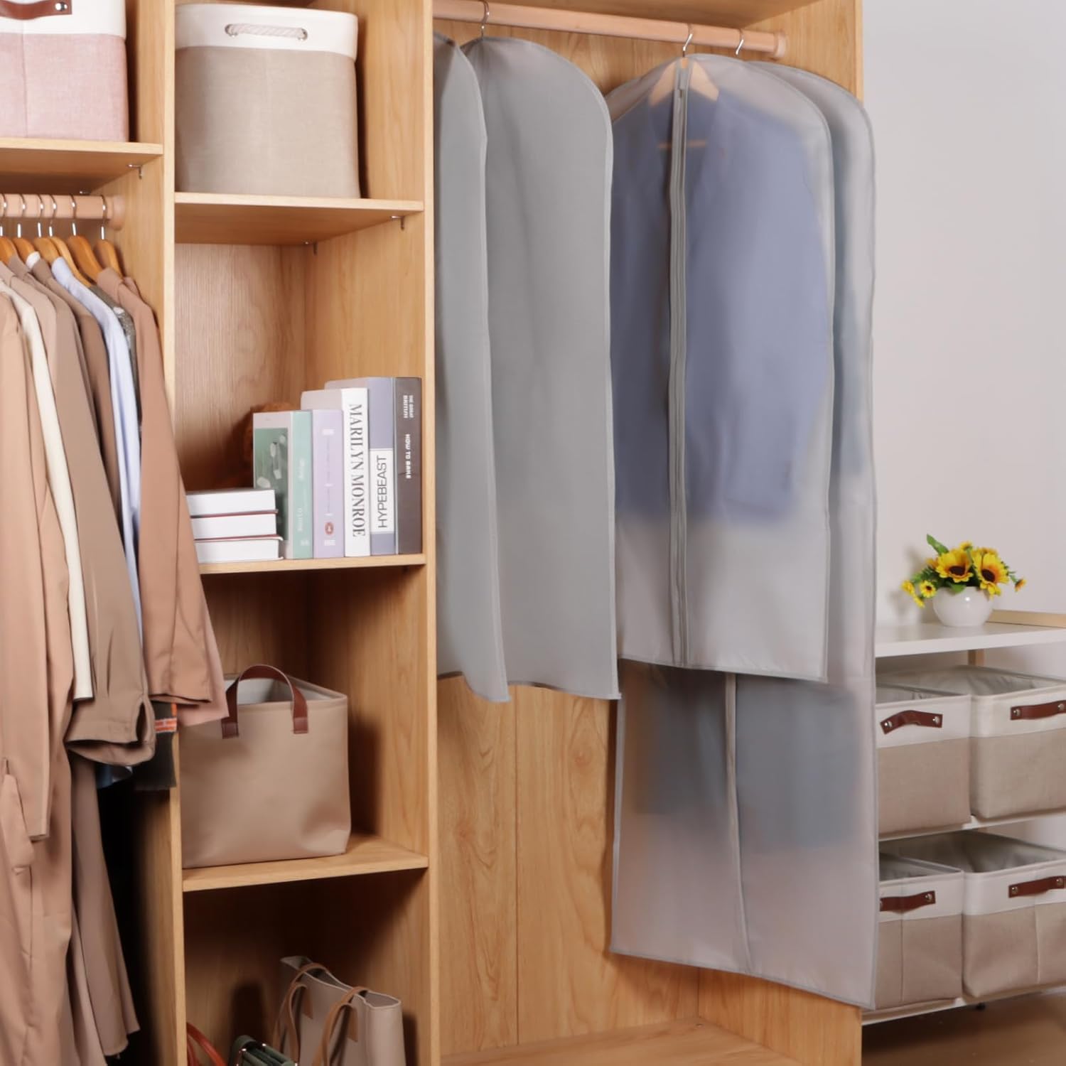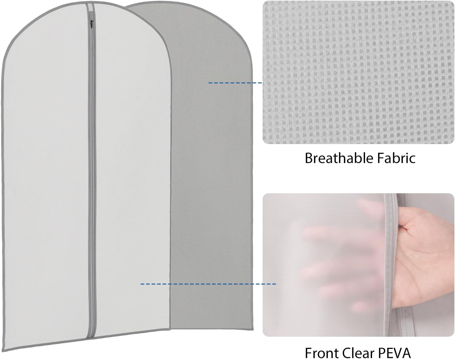 Zilink Breathable Fur Coat Suit Bags for Closet Storage 43" Jacket Cover Hanging Garment Bags for Leather Clothes, Fur Coat, Jackets,Suits, Grey, 8 Pack