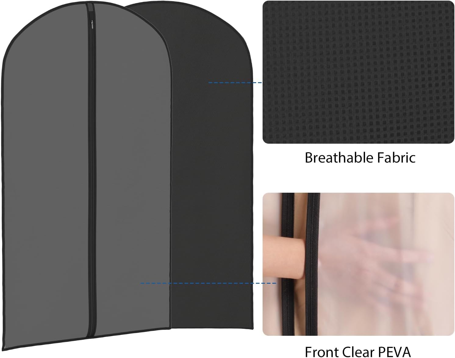 Zilink Clear Suit Bags for Closet Storage and Travel 43" Hanging Suit Covers for Closet Garment Bags for Clothes, T-Shirt, Suits, Coats, Jackets - Black, 8 Pack