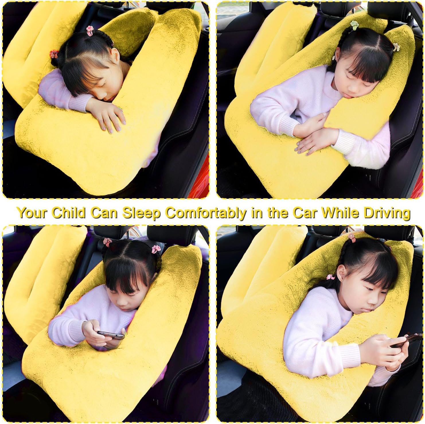 Travel Pillow, Travel Pillow for Kids, Sleeper Hold Pillow Travel, Removable U-Shaped Pillow for Adults and Children to Support Head and Body in The Back Seat of Long Car Trips (Yellow)