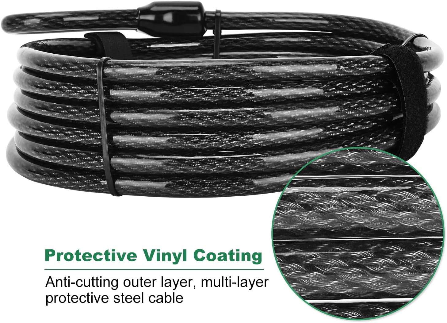 - REASONABLE SIZE: The flexible steel cable diameter is 1/2" and length is 10 ft, The versatile length and design make the looped cable an excellent deterrent for theft of your bikes and more.