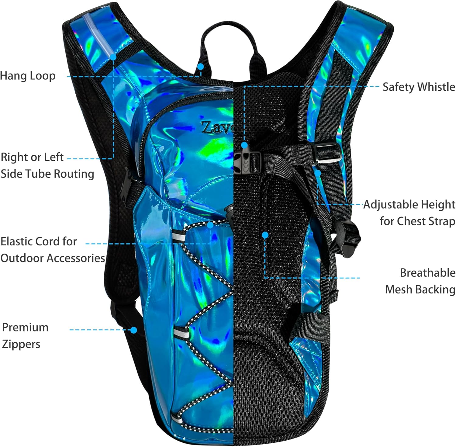 Reflective Hydration Backpack, Hydration Pack - Water Backpack with 2L/3L Hydration Bladder, Essential for Festivals - Rave Hydration Pack for Hiking, Running, Cycling, and Festivals