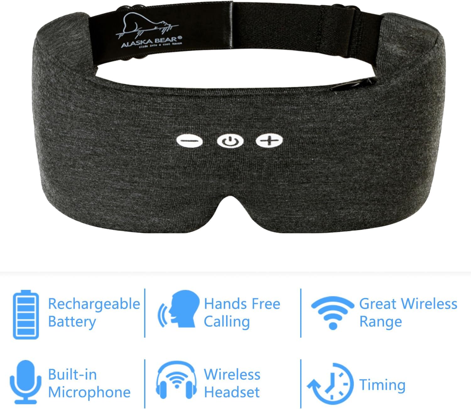 ALASKA BEAR Headphone Cotton Headband Bluetooth 5.2 HD Stereo Noise Reduction Eye Contour Built-in Cotton Sleep Mask with Thin Speakers Wireless Audio Sound Sports Headgear(Cool Gray)