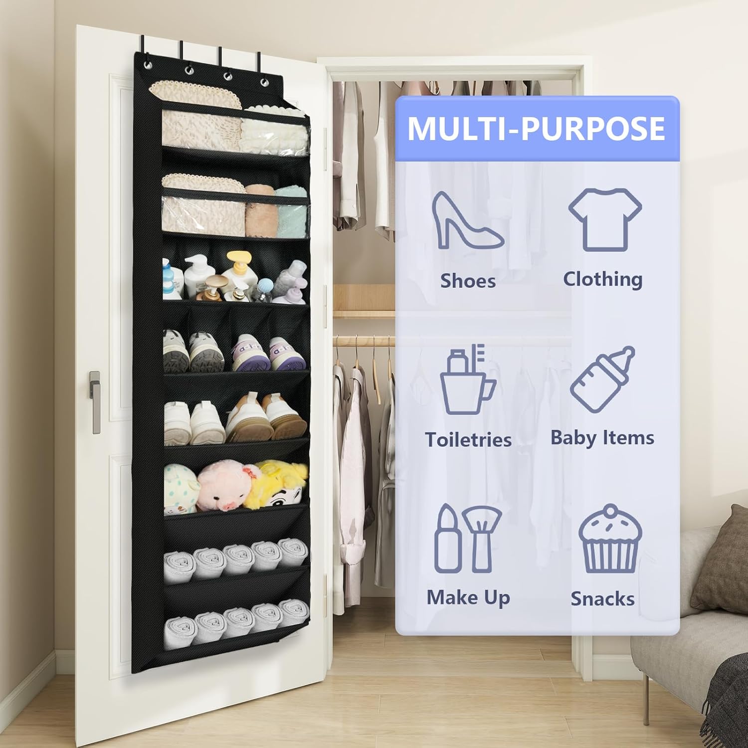 - Space Saving: The shoe rack for door will make the best possible use of the storage space. Hanging shoe storage is a perfect choice for small spaces like closet,pantry room,laundry room, bath room,RV, and dorm. It keeps all kinds of items tidy, maximizes the use of small spaces.