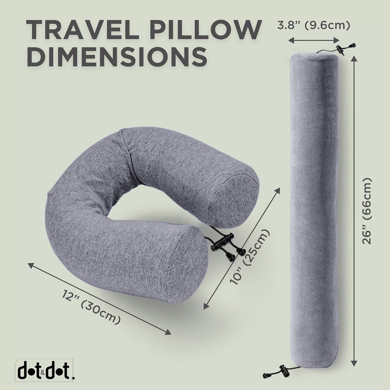 Dot&Dot Twist Memory Foam Travel Pillow for Airplanes - Travel Neck Pillow for Sleeping - Airplane Pillow for Neck Support, Chin, Lumbar and Leg - Adjustable, Bendable Neck Roll Pillow, Steel