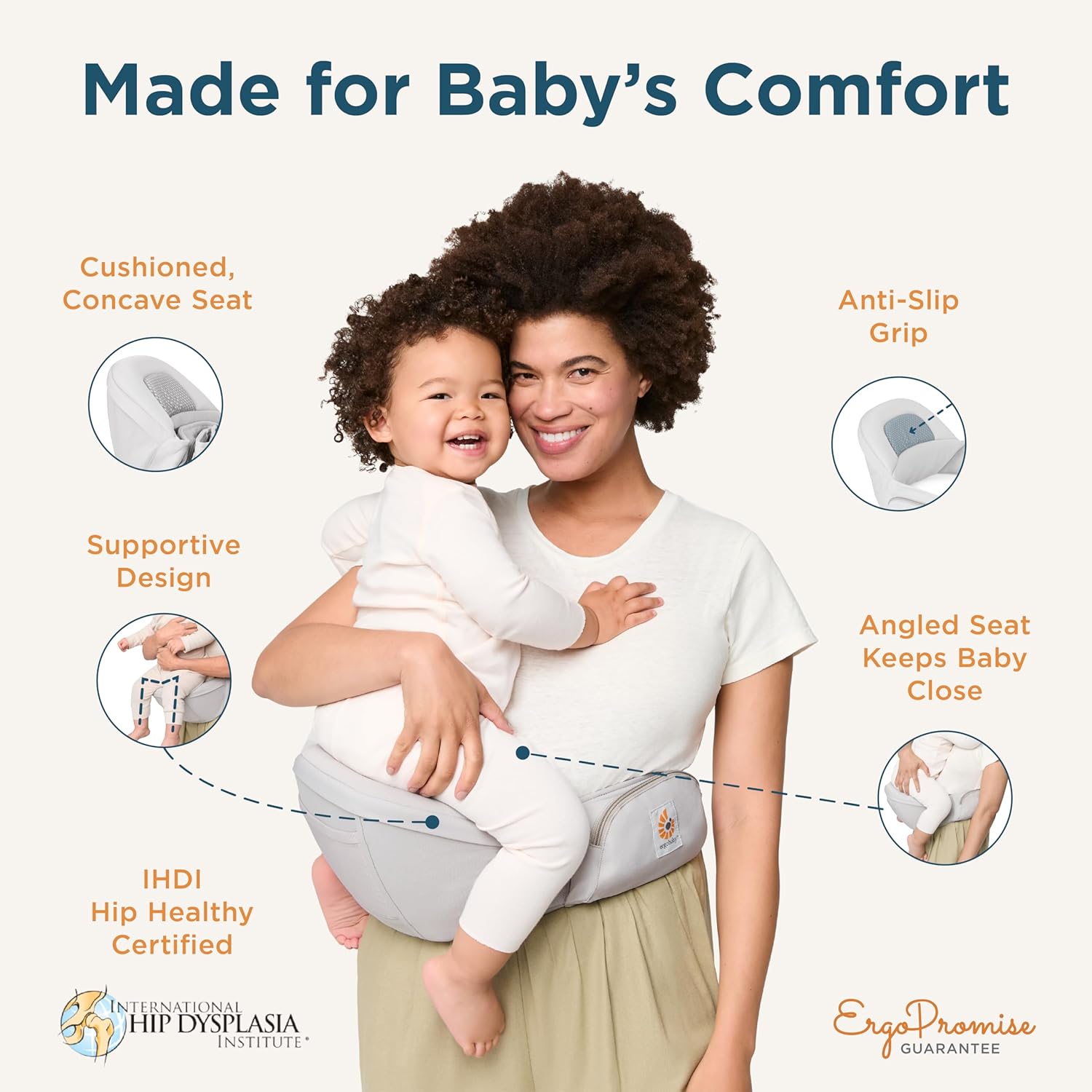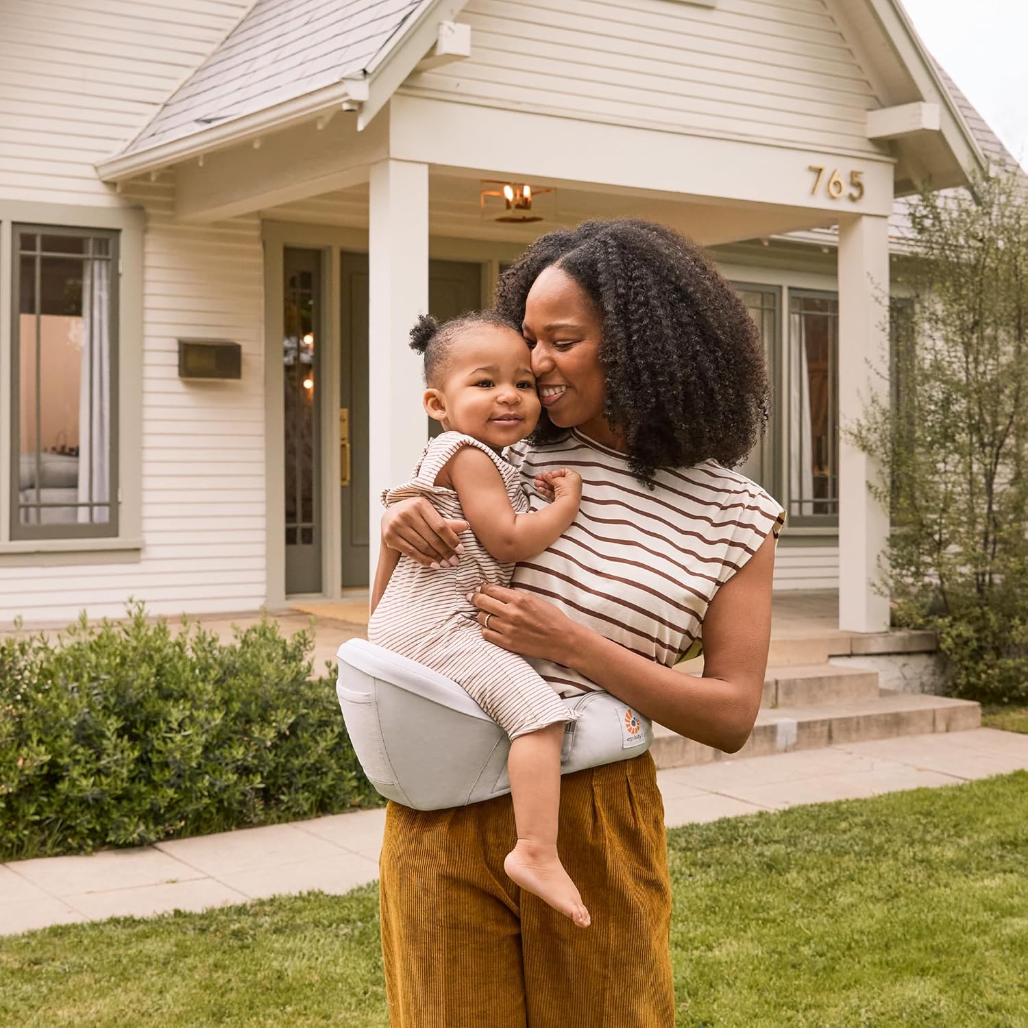 Ergobaby Lift Ergonomic Baby Hip Seat Carrier with Storage, Comfortable Wide Waistbelt and Lumbar Support (17lbs - 45lbs) - Anti-slip Toddler Carrier - Pearl Grey