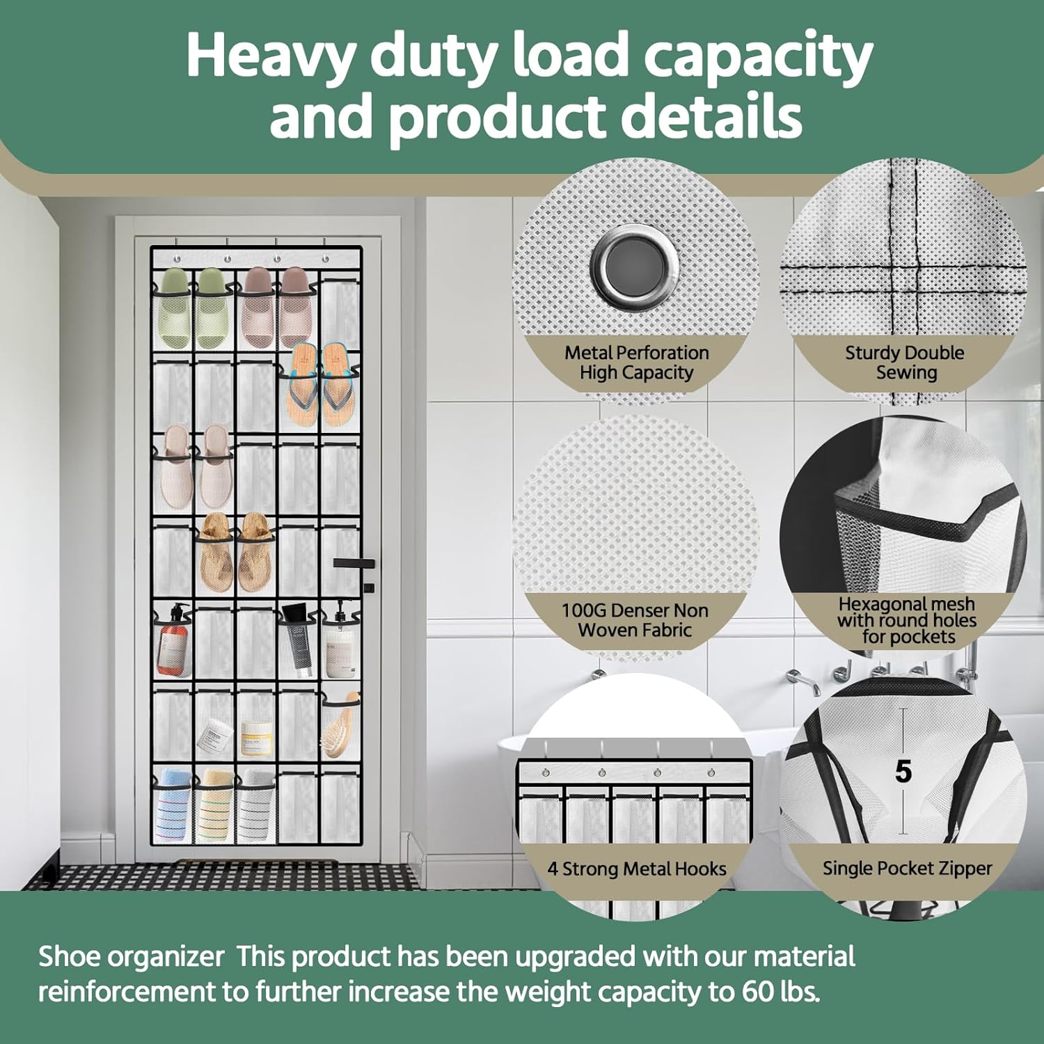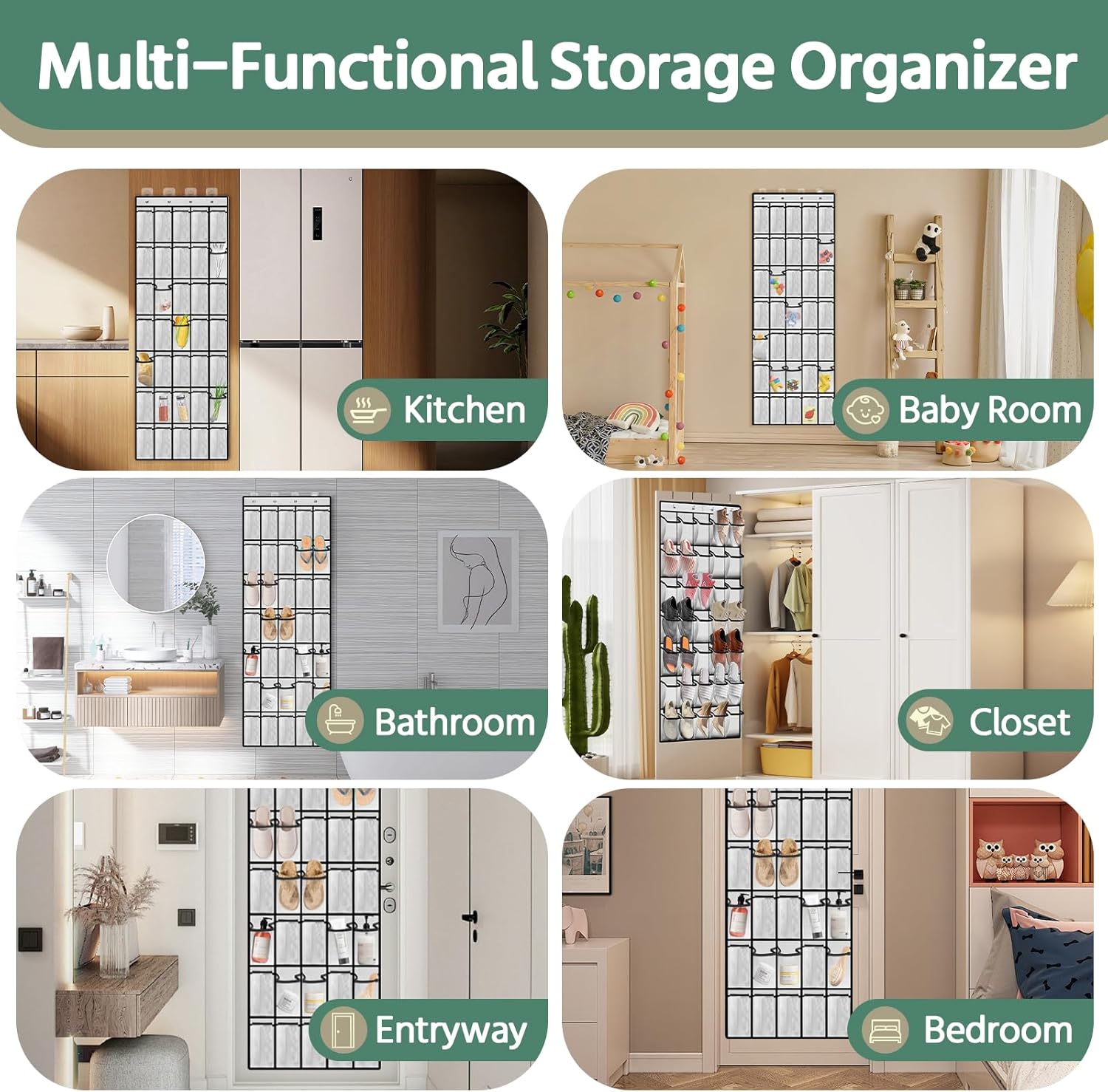 - 🍁✔️【MULTIFUNCTIONAL HANGING STORAGE POCKET 】:This over-the-door shoe organizer can not only be used to store shoes, but can also be hung on your bathroom door to store beauty products, toiletries and household cleaning supplies, or mounted on the back of your pantry closet door to store socks, scarves, undergarments, baby clothes and more. You can even store toys, snacks, and kitchen supplies. Such a practical door shoe rack can not only help you save space, but also keep your home clean and tidy, say goodbye to clutter, simply a good helper for home storage.