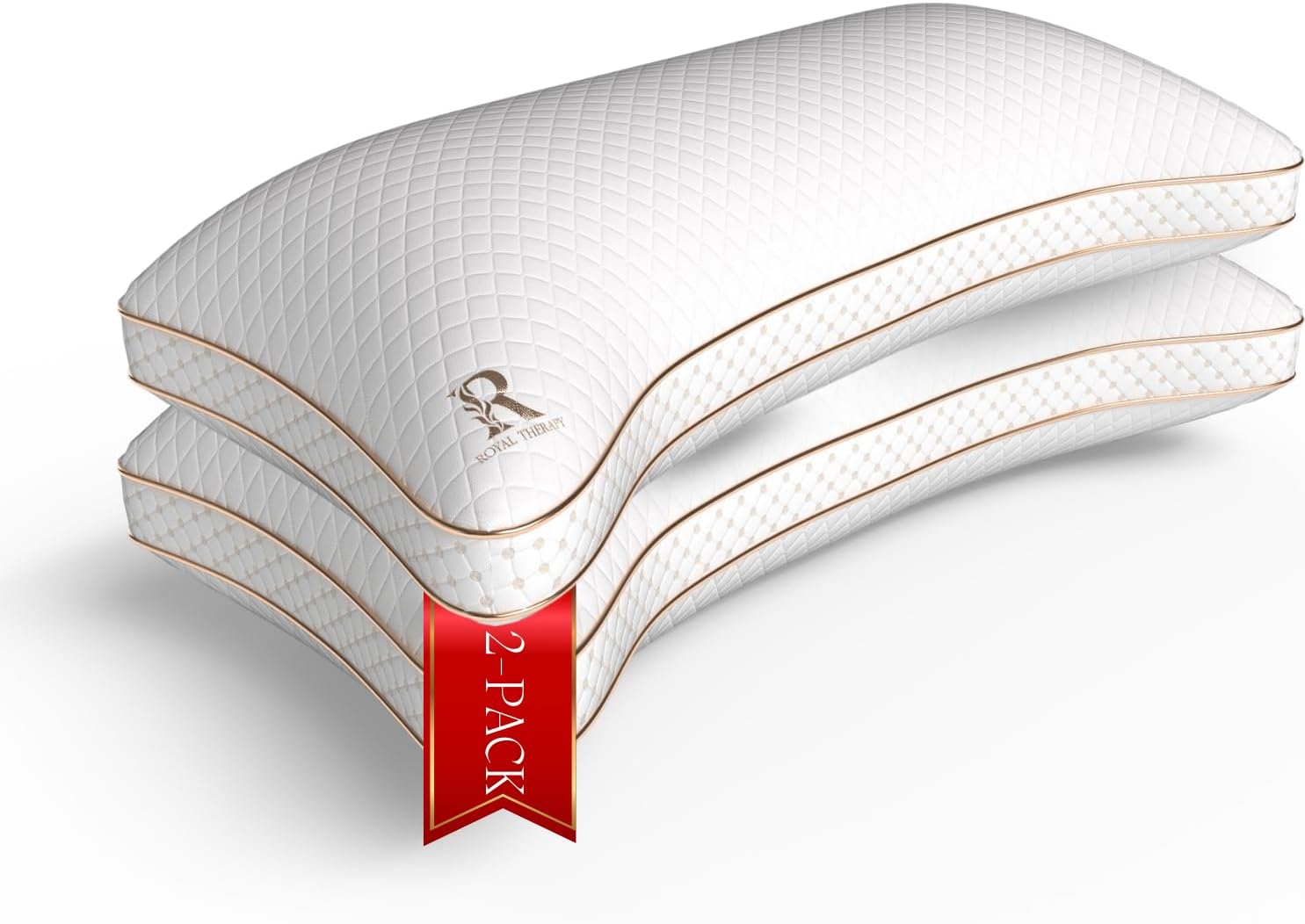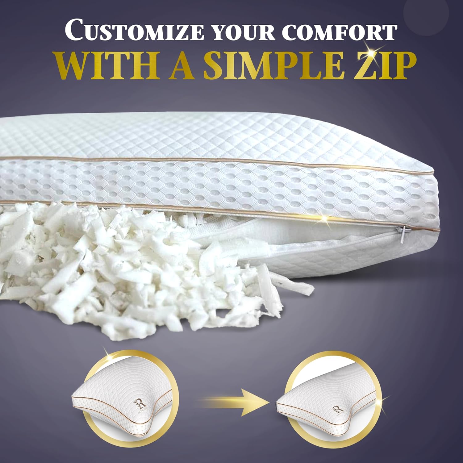 Royal Therapy Adjustable Shredded Memory Foam Pillows – 2-Pack Queen Size Set with Cooling Firm Cover for Side Sleepers