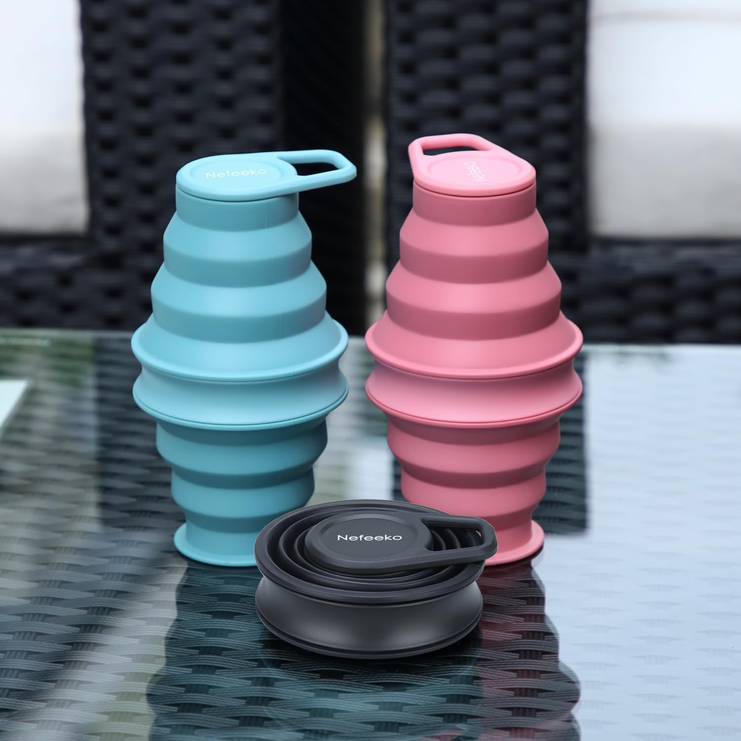 Nefeeko Collapsible Water Bottle,17oz(500ml) Reuseable BPA Free Silicone Foldable Water Bottles for Travel Gym Camping Hiking, Portable Leak Proof Sports Water Bottle with Carabiner