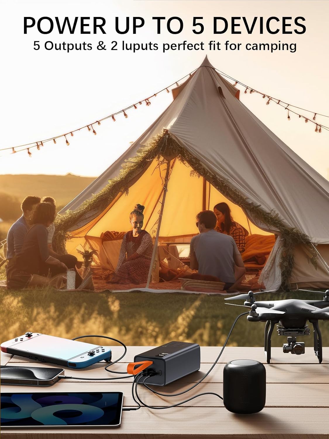 - 2 INPUT & 5 OUTPUT: You can share output for 5 devices at the same time, easy to use and long service life. This external battery power bank has 5 output and 2 input port: 2 USB output with 15W; 2 USB output with 30W; 1 USB-C with 20W output / with 18W input; and one micro with 18W input. Compatible with your phone, tablet, headset, handheld game console, mini speaker, camera and other USB electronic devices.