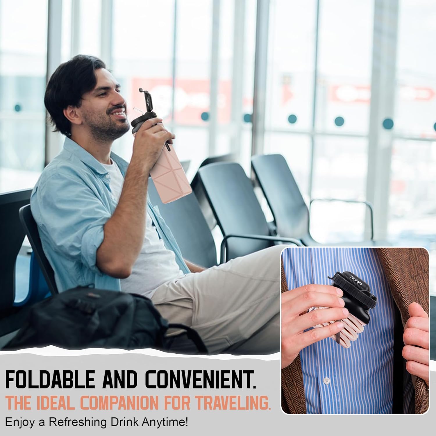 - 2. Collapsible and Space-Saving Design These silicone water bottles are designed to fold down to a compact size, making them perfect for saving space in your bag or backpack. Whether youβre traveling, going to the gym, hiking, camping, or in the office, they expand to hold up to 20.6oz of liquid when filled.