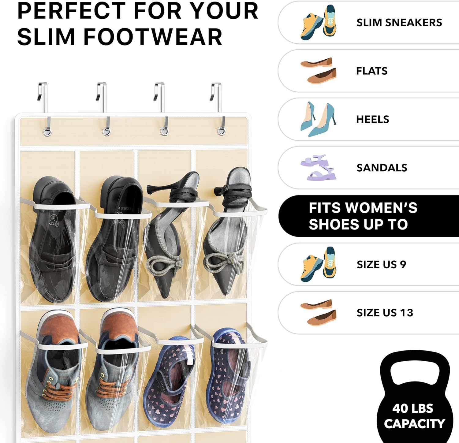 Simple Houseware 24 Pockets - Crystal Clear Over The Door Hanging Shoe Organizer, Beige (64'' x 19'')